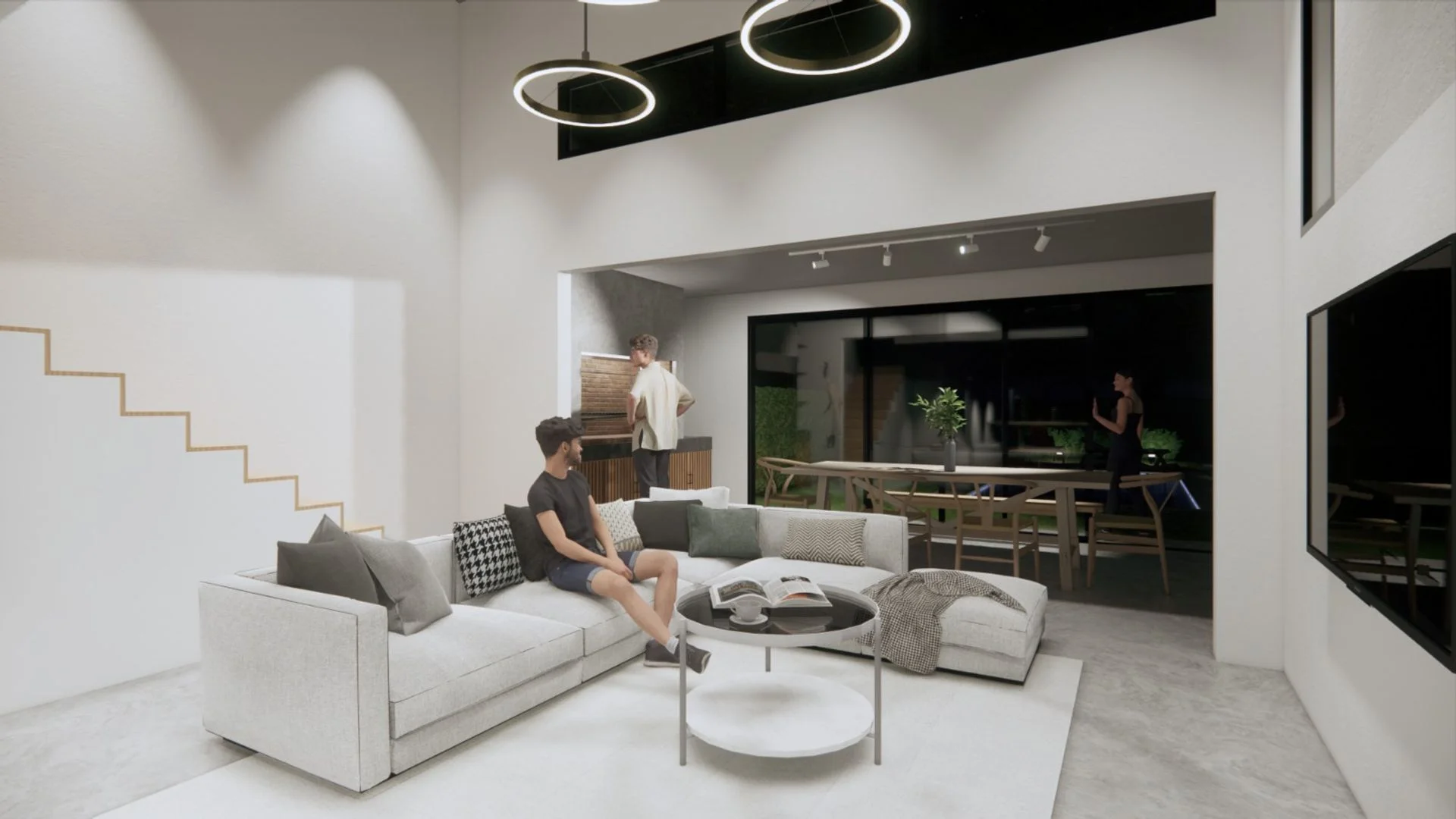 Características: living comedor tipo loft en doble altura con hogar, amplios ventanales con salida a terraza con parrillero, cocina con barra desayunador, doble mesada con espacio para heladera, lavavajillas, microondas, lavadero con mesada y espacio para lavarropas, 3 dormitorios, con vestidor, y restantes 2 dormitorios con espacio para placares, amplio playroom en planta alta que balconea hacia el living. Visuales completas hacia el parque, baño completo amplio y baño privado en habitación principal, ambos en planta baja, instalación para gas envasado para cocina, termotanque o calefón (opcional estufa en living y/o dormitorios), tanque de reserva par Agua potable y otro para agua reciclada para inodoros, riego y/o limpieza