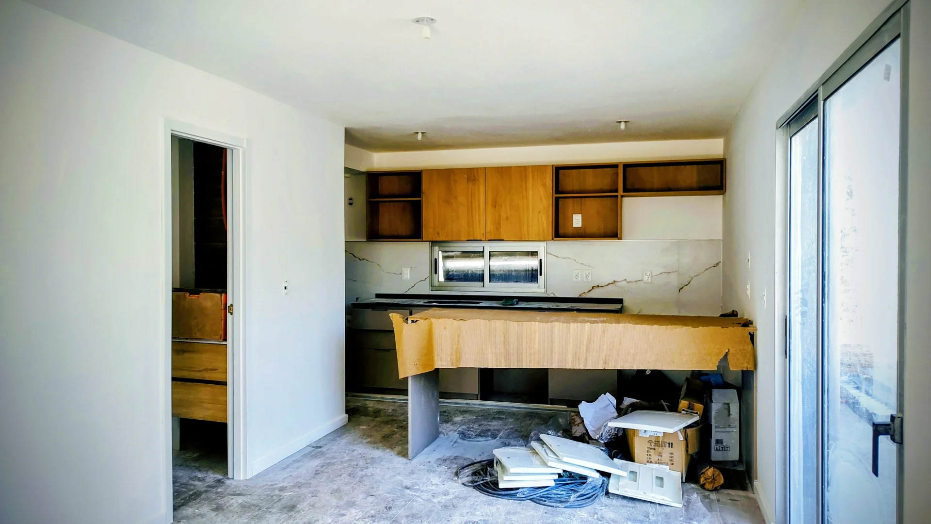 Living comedor, cocina integrada y bańo social con conexión a lavarropa.