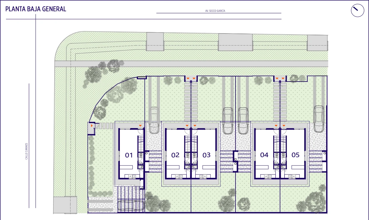 Complejo cerrado de 5 casas de 3 dormitorios y dos baños, tipo dúplex con balcón, todas al frente.