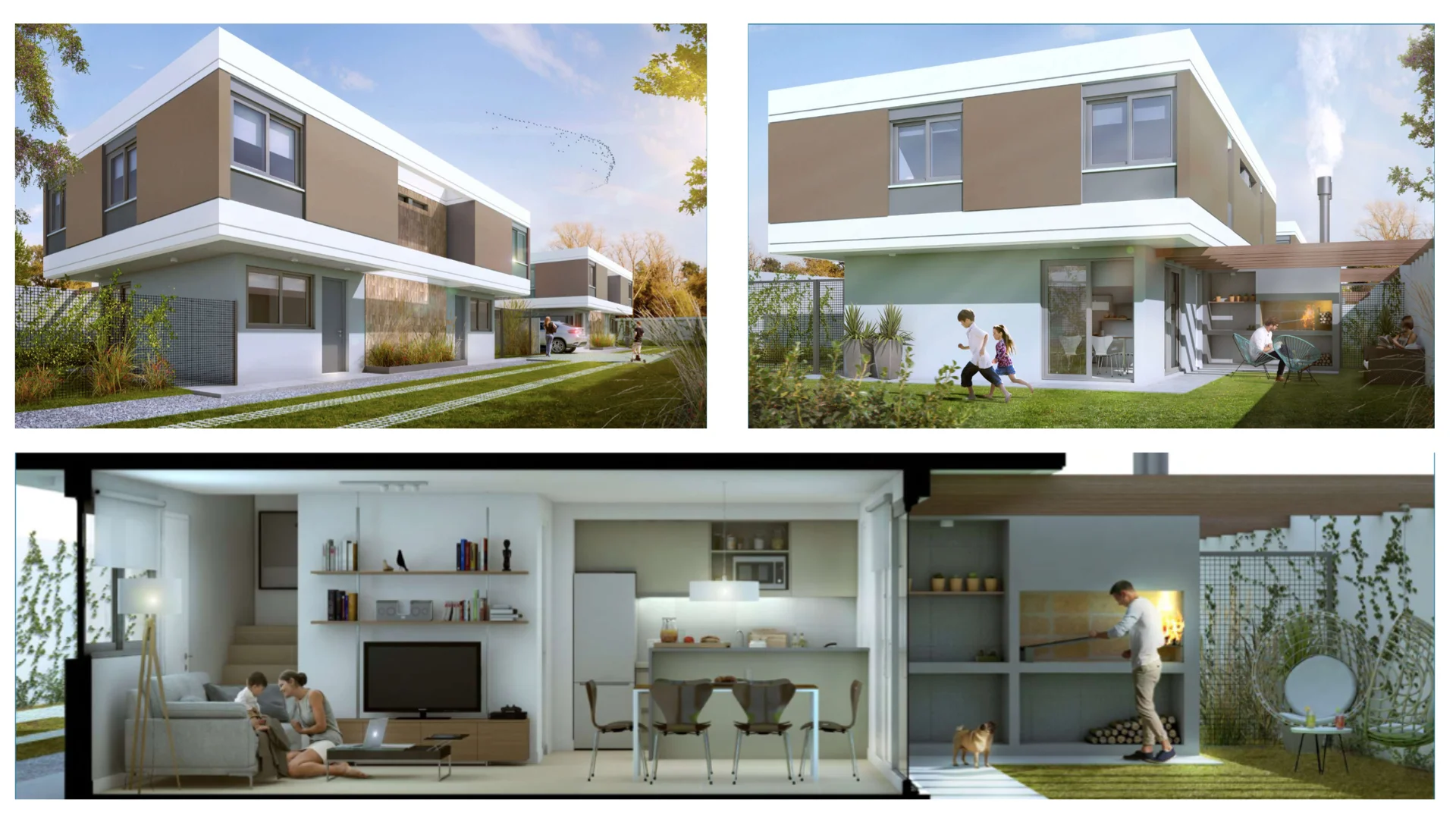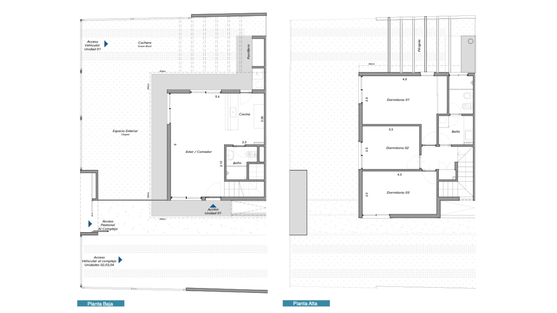 Complejo cerrado de 4 casas de 3 dormitorios y dos baños, tipo dúplex.