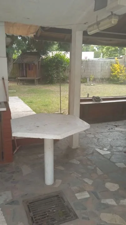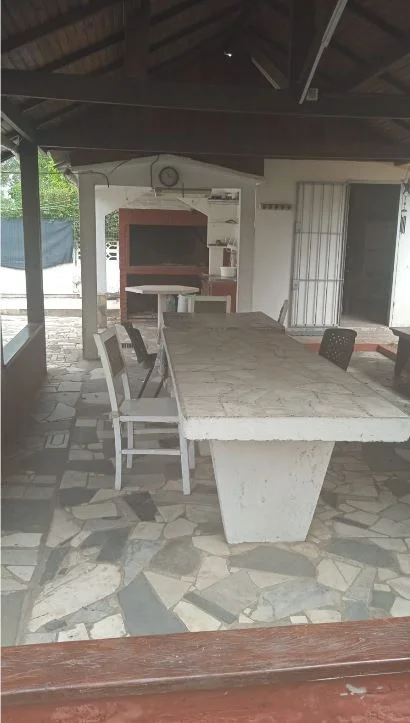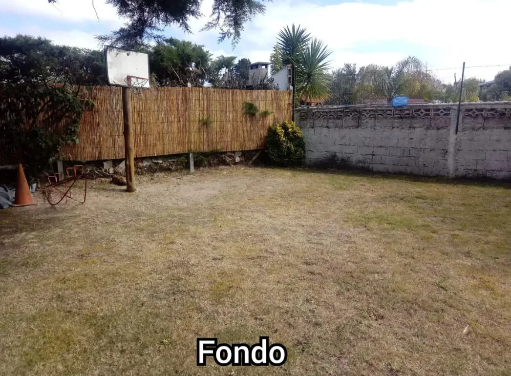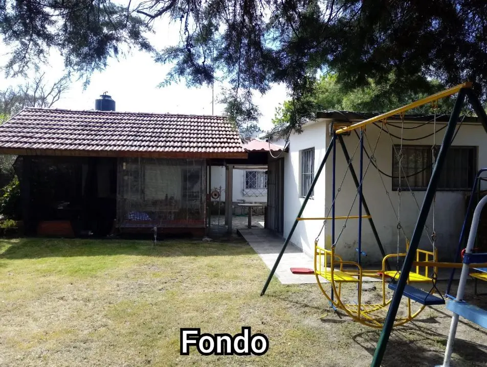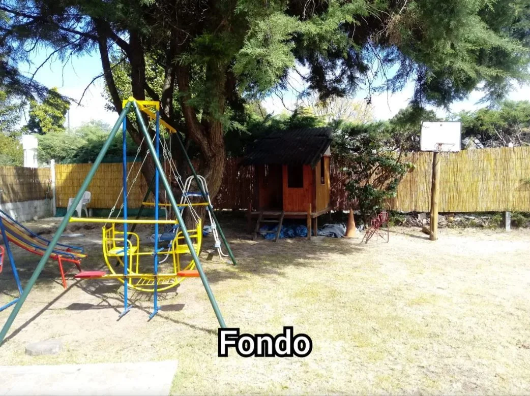 Amplio fondo con barbacoa techada, parrillero completo y juegos infantiles. Todo cercado. Acepta mascotas.