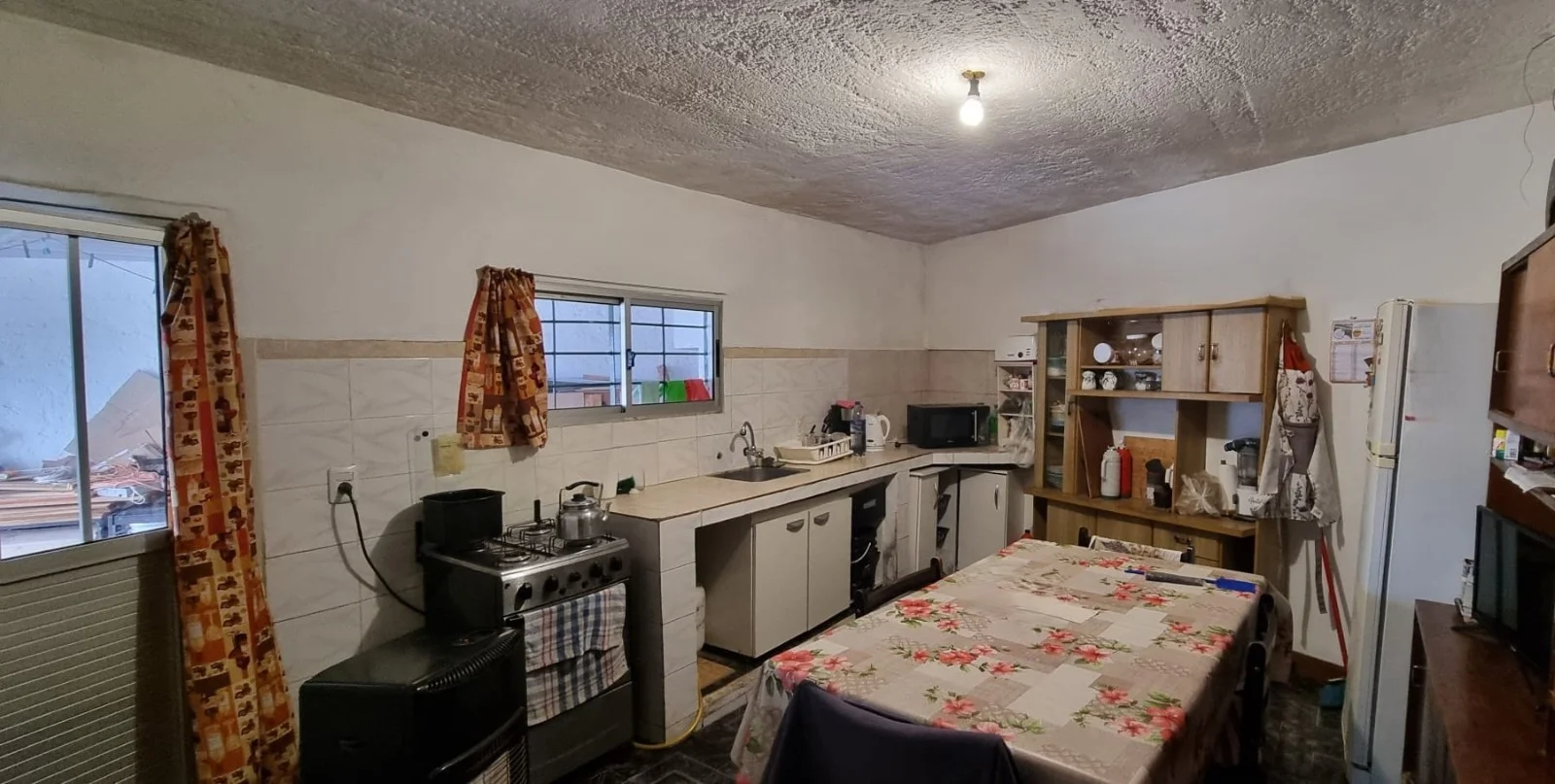 La propiedad cuenta con una cocina comedor definida con gran mesada y ventanas al parrillero techado con acceso al mismo, un estar al frente con estufa a leña, un baño completo, 3 domritorios bien iluminados y de buenas dimensiones, patio - lavadero y espacio de guradado en el parrillero techado que a su vez tiene capacidad para más de un vehículo.