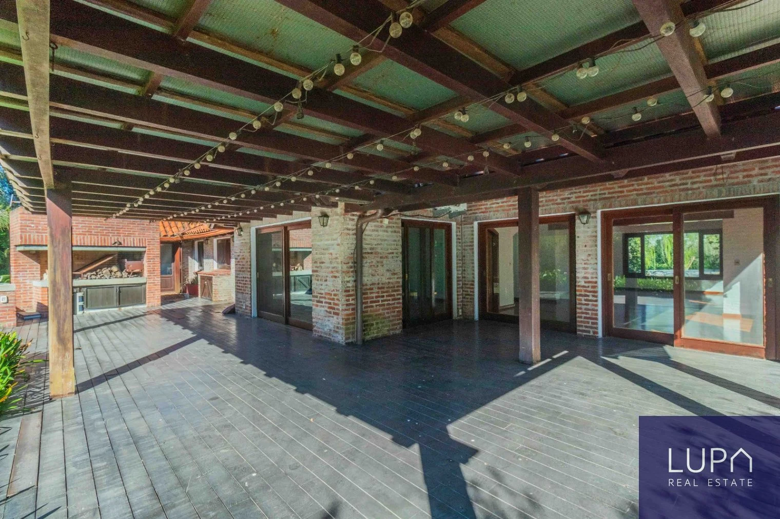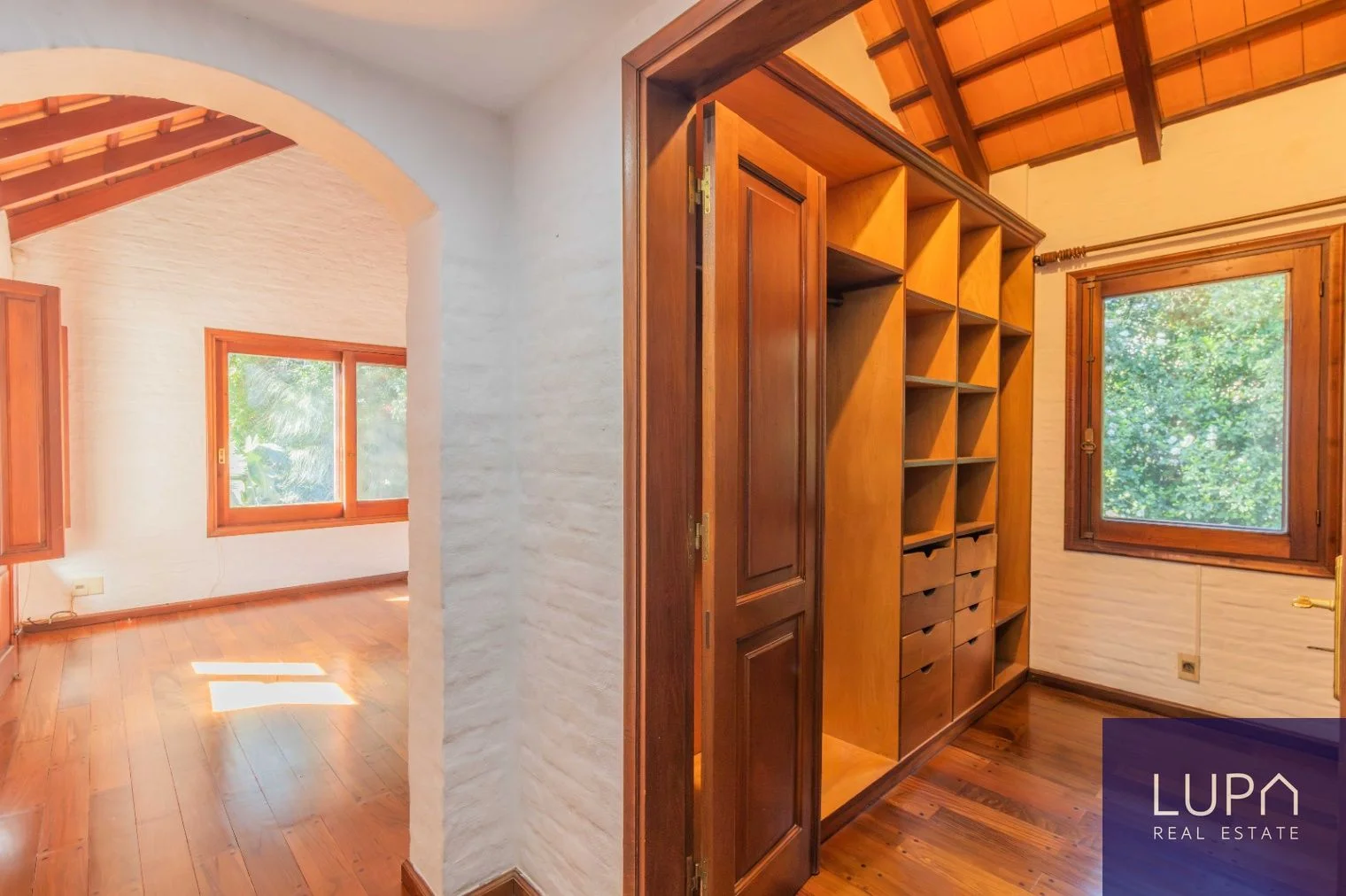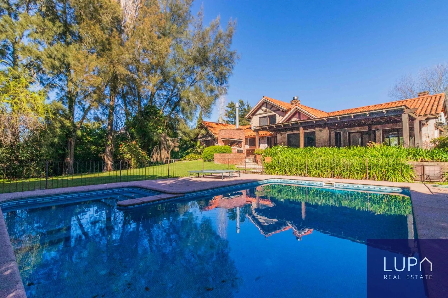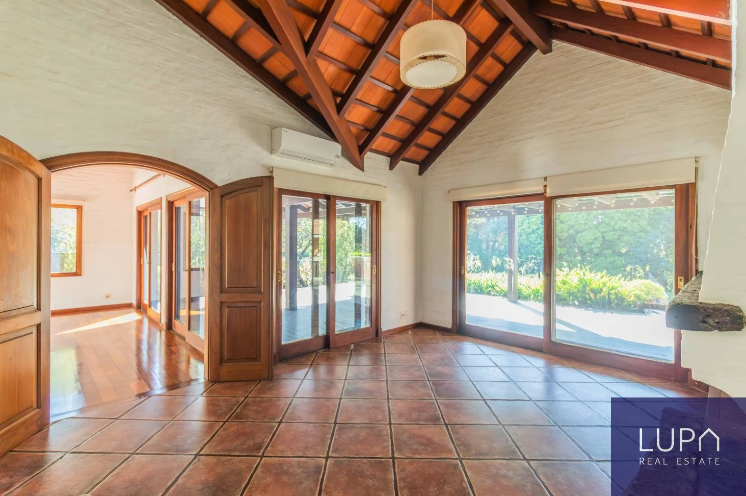 Los exteriores son igualmente atractivos: un jardín parquizado con piscina invita a disfrutar de los días soleados, mientras que el parrillero bajo pérgola ofrece el espacio perfecto para reuniones sociales. La propiedad cuenta con calefacción por losa radiante a gas y seguridad permanente.
