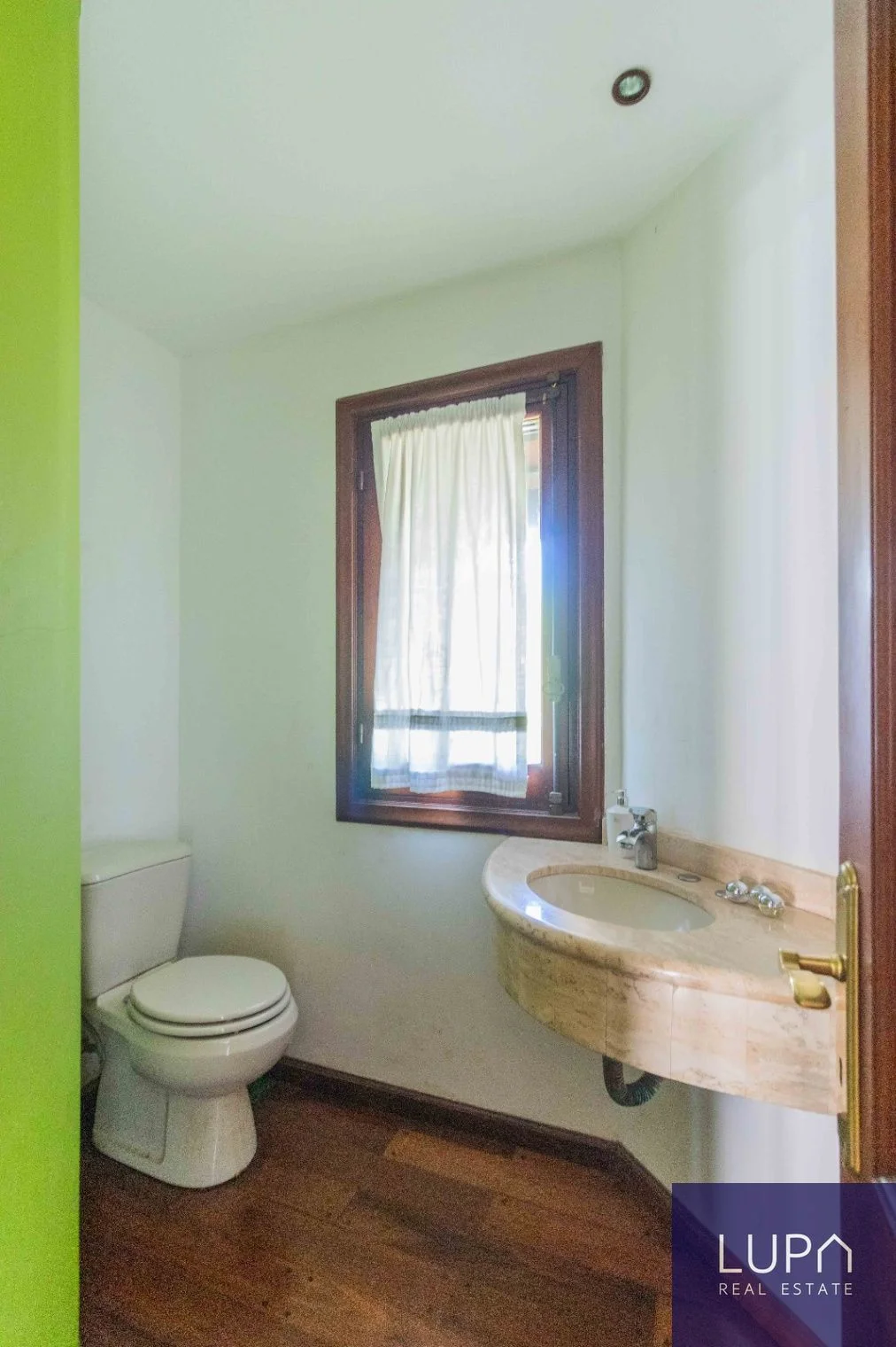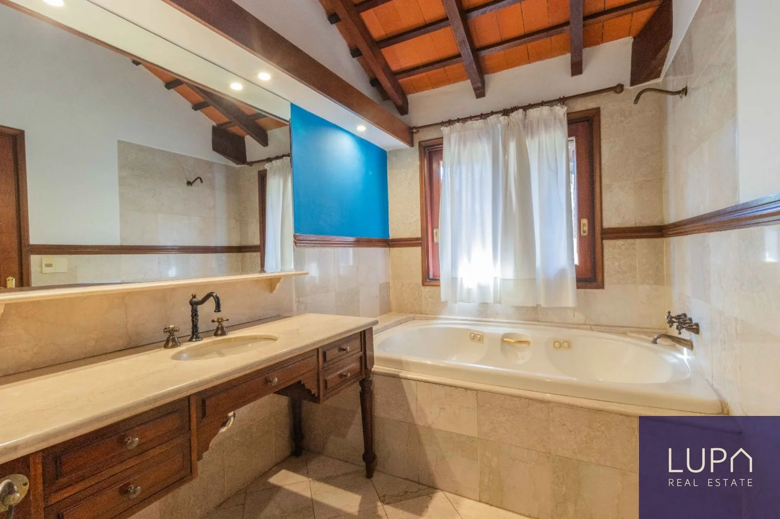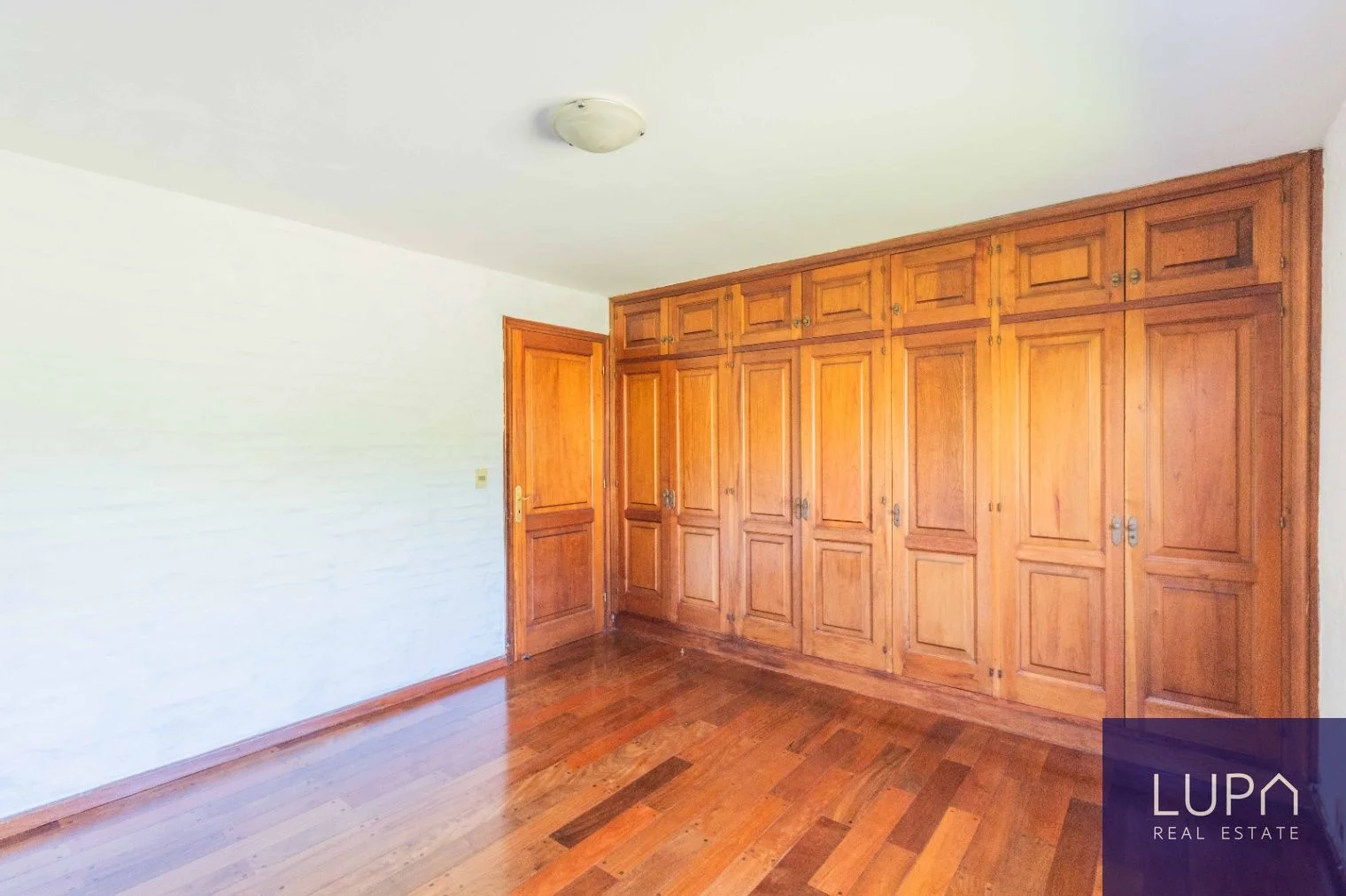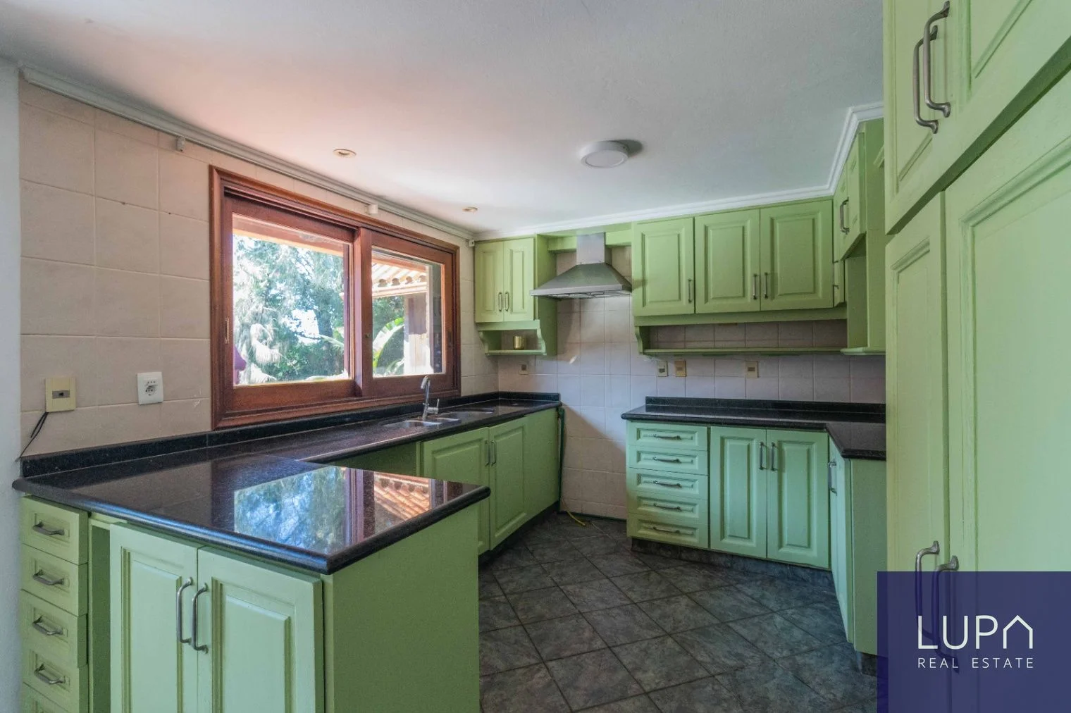 Los exteriores son igualmente atractivos: un jardín parquizado con piscina invita a disfrutar de los días soleados, mientras que el parrillero bajo pérgola ofrece el espacio perfecto para reuniones sociales. La propiedad cuenta con calefacción por losa radiante a gas y seguridad permanente.