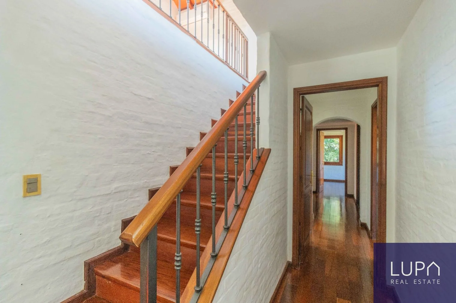 En a planta alta cuenta con 3 dormitorios y tres baños. El dormitorio principal en suite con vestidor, jacuzzi y acceso a una hermosa terraza privada que disfrutar. Además cuenta con un playroom que podría convertirse en un 4 dormitorio. También cuenta con servicio completo.