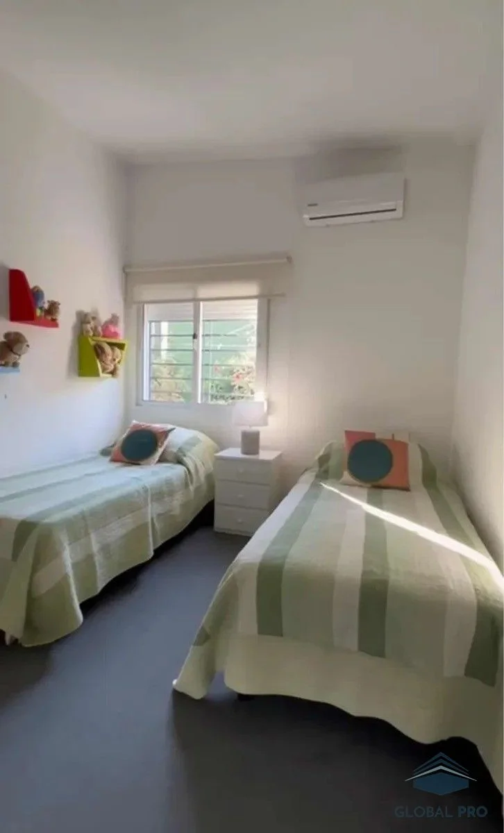 El dormitorio principal es muy espacioso, con amplios placares y baño en suite, mientras que los otros dos dormitorios, también con placares, comparten un baño completo. Cada ambiente está dotado de aire acondicionado, asegurando un clima agradable en cualquier época del año. La casa se completa con un jardín bien cuidado, cochera cubierta y un portón automatizado que brinda seguridad y comodidad. Además, se ofrece un costo bonificado de peaje y una contribución inmobiliaria anual de 50.619, con una primaria dividida en 3 cuotas de 2.235. Esta propiedad, con una antigüedad de 10 años, es una oportunidad única para quienes buscan un hogar moderno y funcional en una excelente ubicación.