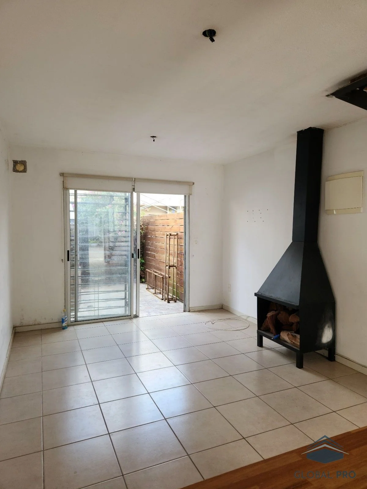 En la planta baja, se encuentra un amplio living comedor con cocina integrada, equipado con una estufa a leña que proporciona calidez y confort en los días más fríos. Desde este espacio, se accede al fondo de la propiedad, donde se encuentra un parrillero perfecto para disfrutar de reuniones familiares y con amigos. En la planta alta, la casa cuenta con dos dormitorios luminosos y un baño, brindando un espacio privado y confortable para el descanso.