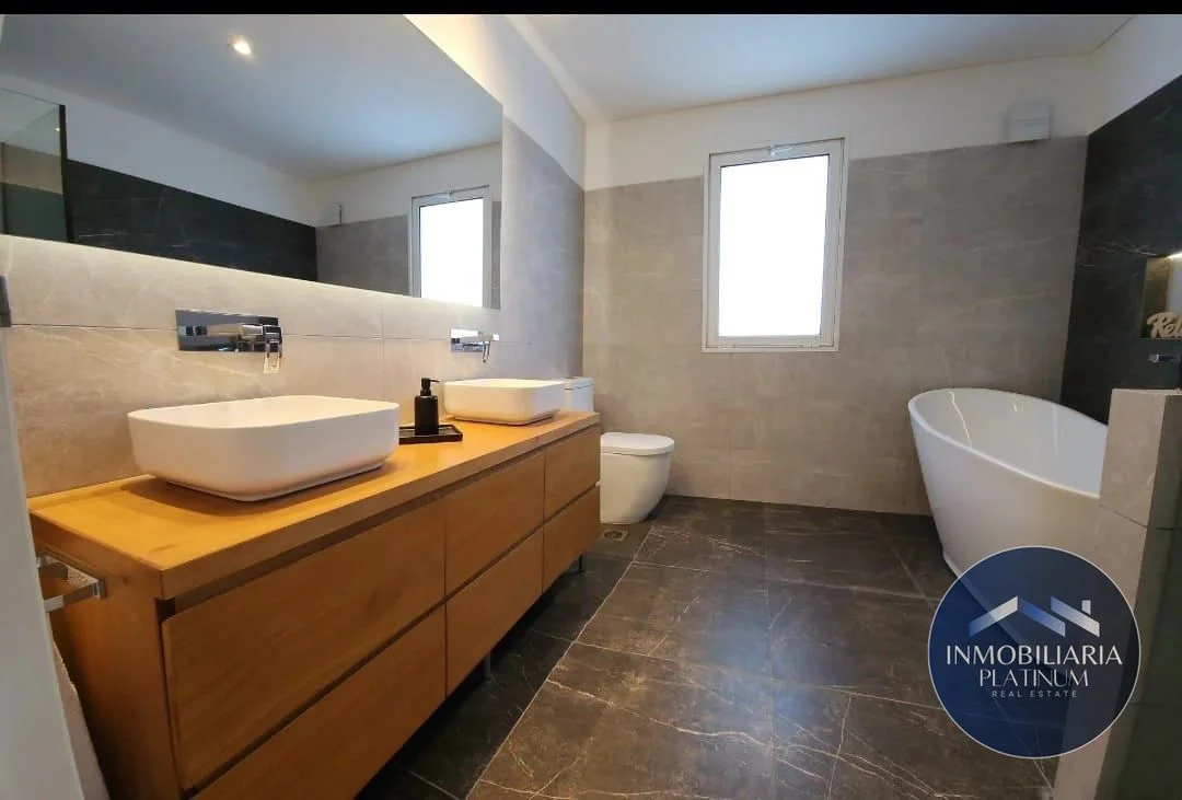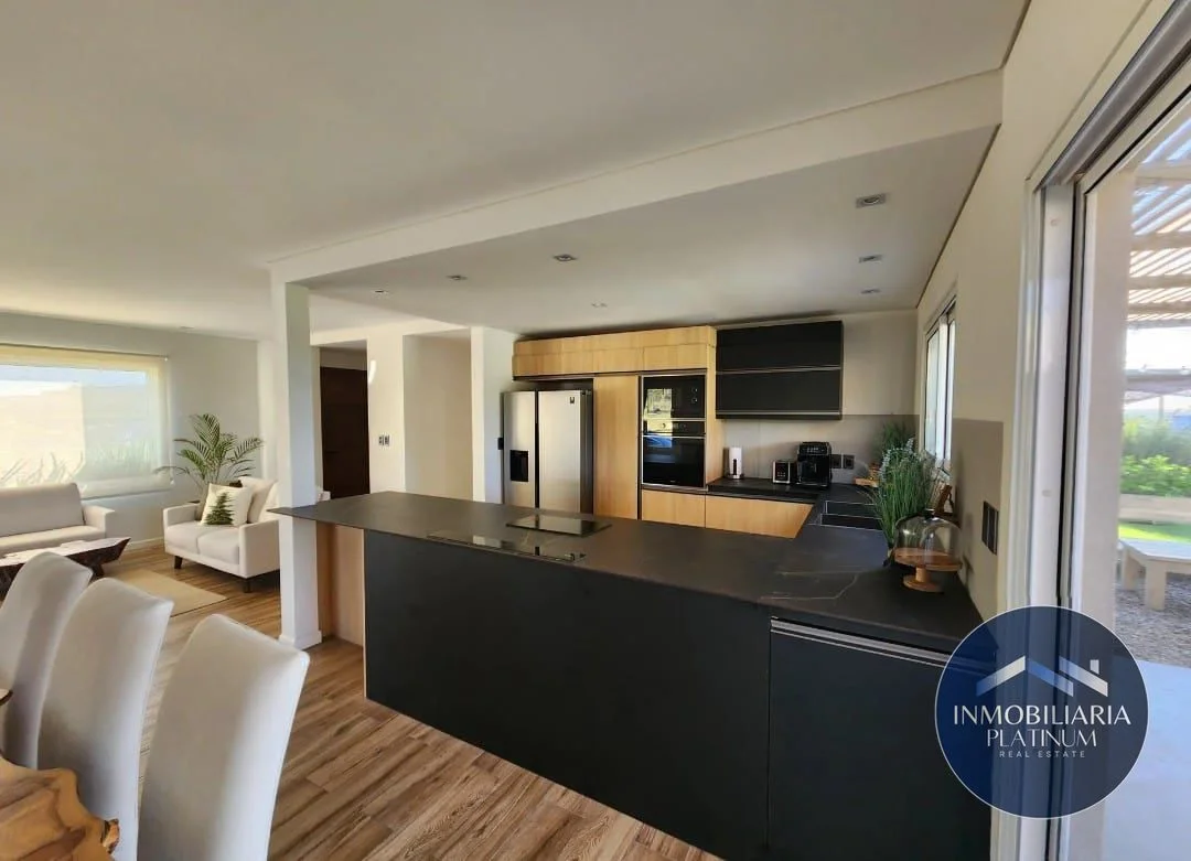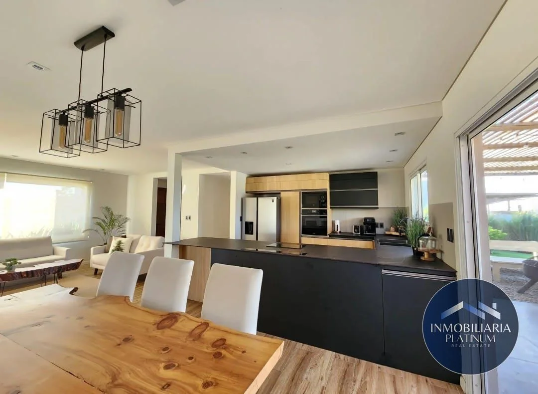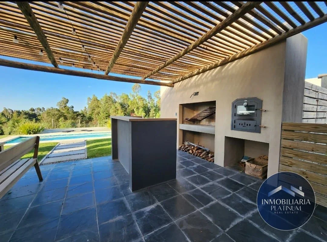 Los espacios exteriores son ideales para el disfrute y el entretenimiento, incluyendo una barbacoa con parrillero de construcción tradicional, horno a leña con pérgola cubierta, área de servicios con tendedero y depósito, cochera doble con pérgola y una espectacular piscina con clorador de sal Akesse, deck integrado y bomba de calor inverter. Este proyecto, diseñado por el renombrado estudio de Arquitectos Hughes & Presno y ejecutado por BA Construcciones, cuenta con una garantía de 6 años. La construcción es de calidad superior, con platea de hormigón armado y muros de ladrillos de hormigón celular de alta eficiencia térmica y acústica. La casa está equipada con agua caliente central a gas, equipos frío-calor wifi inverter en todos los ambientes, cerramientos de doble vidrio hermético y cortinas blackout Harveys incluidas, además de revestimientos y porcelanatos españoles.