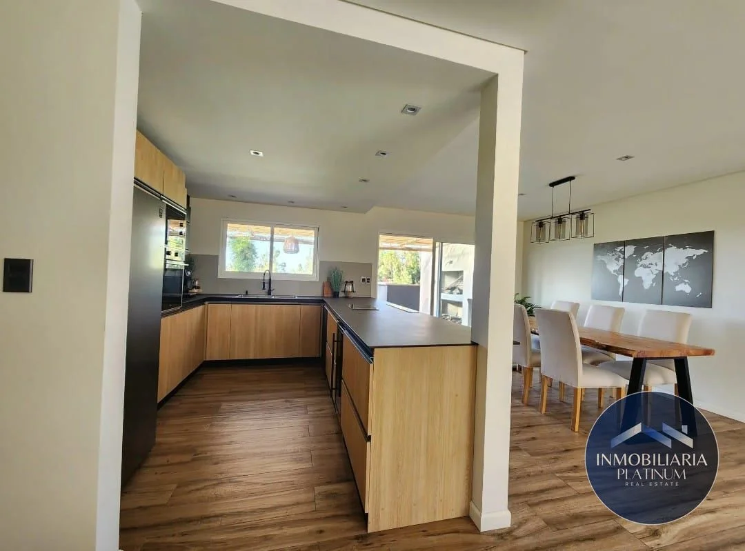 Venta de Casa en el exclusivo barrio privado Mirador de la Tahona, esta impresionante propiedad se desarrolla toda en una sola planta, destacándose por su eficiente diseño que brinda amplios y cómodos espacios. Con un terreno perimetral de 1163 m² ubicado en el punto más alto del barrio, la casa cuenta con 185 m² construidos, totalmente cercada y parquizada. La distribución incluye tres dormitorios, tres baños, siendo la máster suite un espacio privado con baño y vestidor. El área social se compone de un elegante hall de acceso, un toilette de visitas y un amplio living comedor equipado con una estufa a leña de alto rendimiento Lacunza. La cocina, integrada al comedor, está completamente equipada con electrodomésticos de alta gama (microondas, horno, heladera de doble puerta, lavasecarropa, lavavajillas y cava refrigerada de vinos), además de contar con mesadas de Dekton, anafe de inducción y campana extractora telescópica.