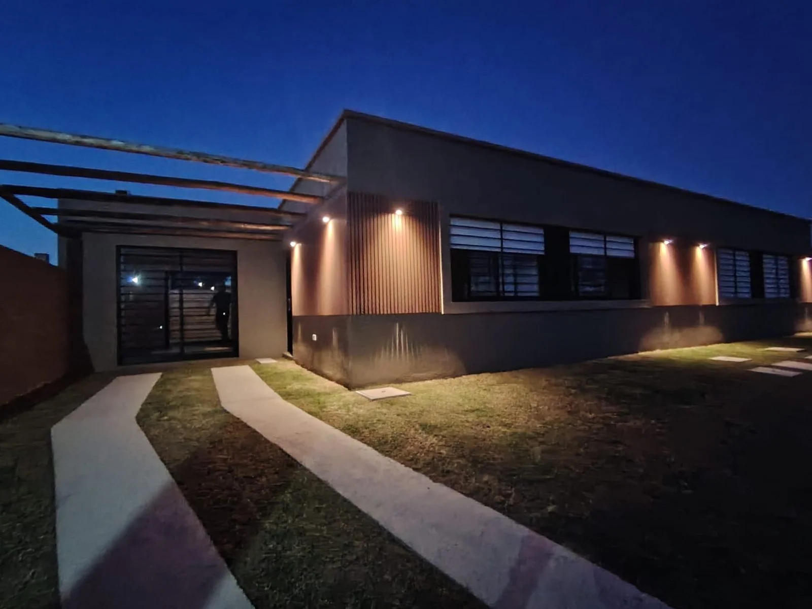 Construida sobre una platea de hormigón, sus muros son de hormigón celular de 20cm, cubierta de hormigón con ecofrado M.equis3 e impermeabilizacion con membrana asfaltica de 40k, cielorrasos y tabiques de yeso, puertas interiores laqueadas blancas con herrajes de acero inoxidable.