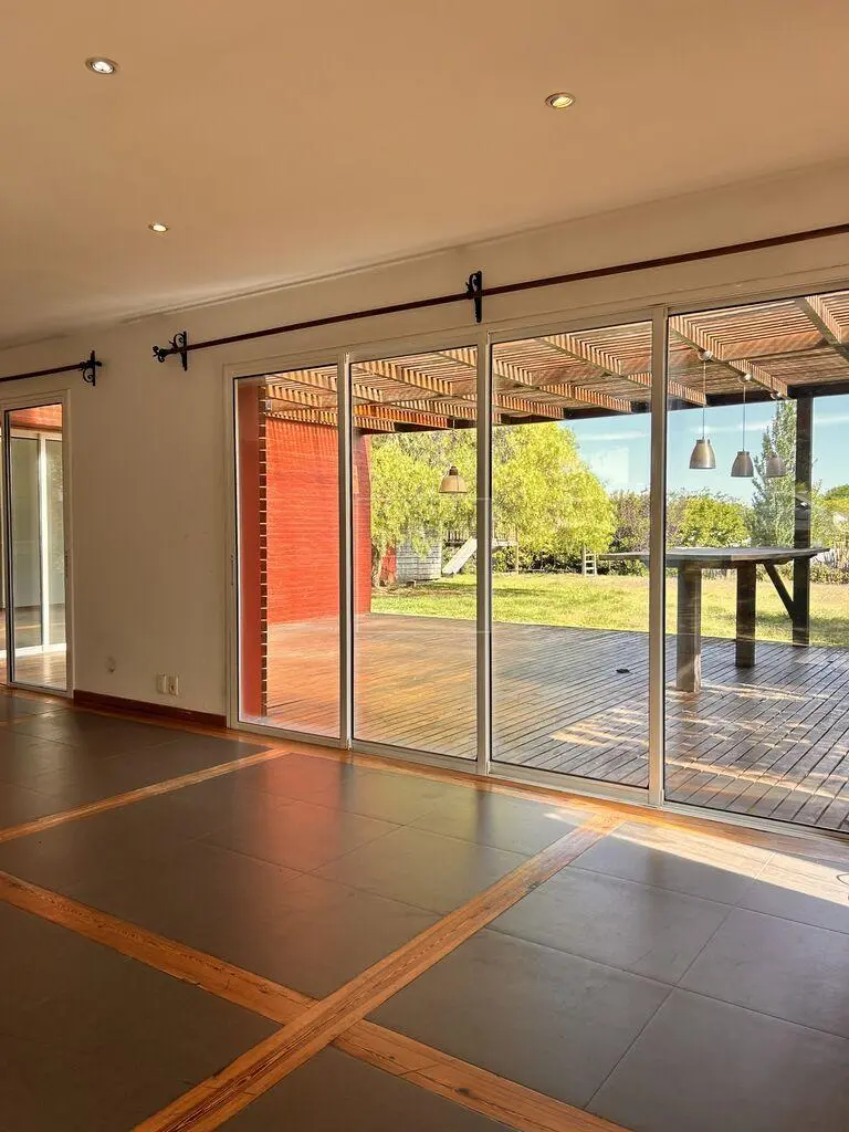 En planta baja tiene living comedor amplio con estufa de alto rendimiento y ventanales hacia el jardín y deck.