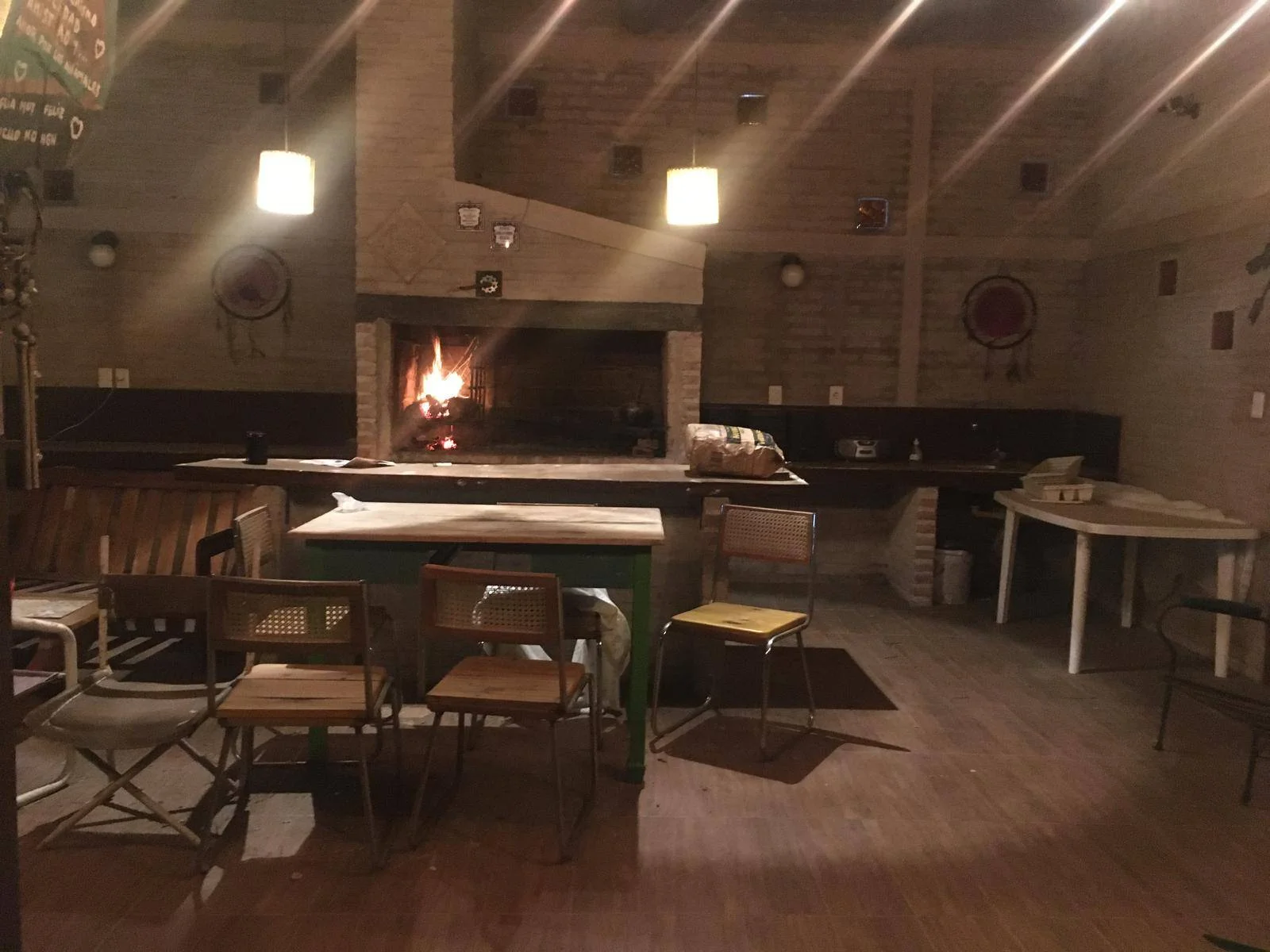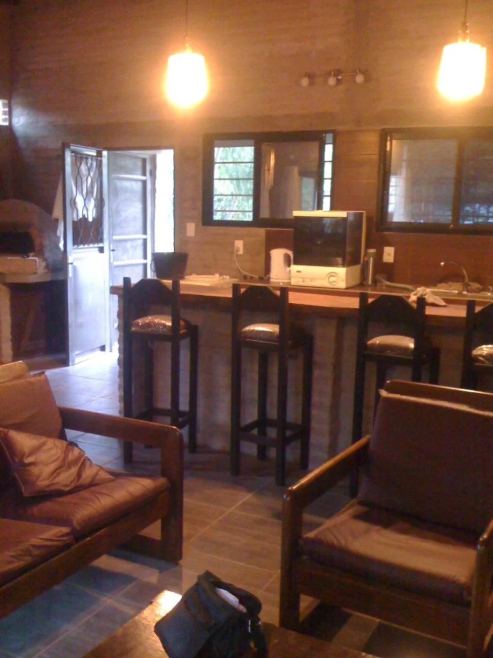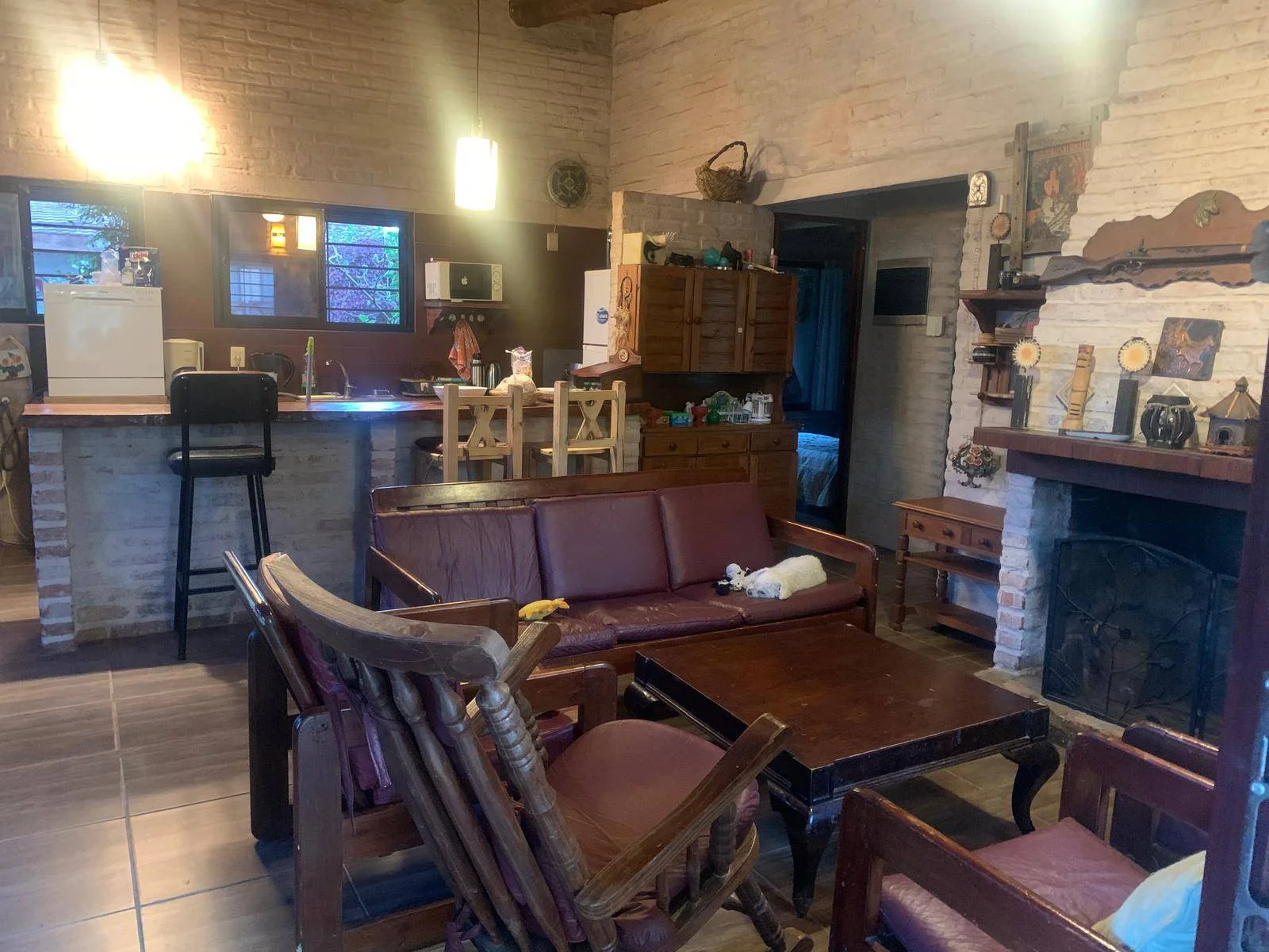 El living comedor, integrado a la cocina, está equipado con una elegante estufa a leña que proporciona calidez y confort durante los días más frescos.