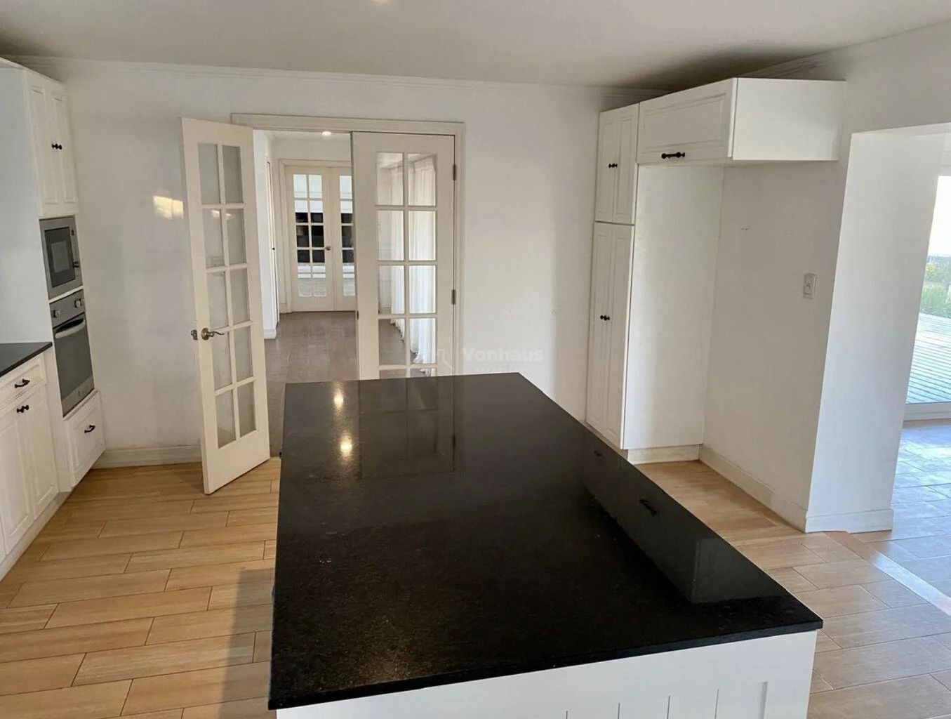 Gran cocina con isla, amplio estar integrado a la cocina con estufa de alto rendimiento. Tanto la cocina y el comedor se comunican con el deck a través de grandes ventanales.