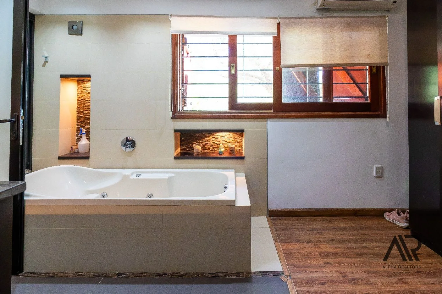 El exterior de la casa es igual de impresionante, con un extenso jardín interior que ofrece un espacio perfecto para actividades al aire libre y el disfrute del entorno natural. La propiedad está equipada con comodidades modernas, incluyendo aire acondicionado, chimenea y parrilla, así como una piscina que invita a relajarse en los días soleados. Con una orientación norte que garantiza luz natural durante todo el día, este inmueble es un verdadero refugio familiar en un entorno sereno y agradable.