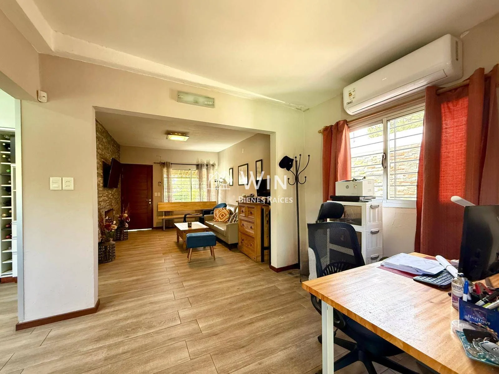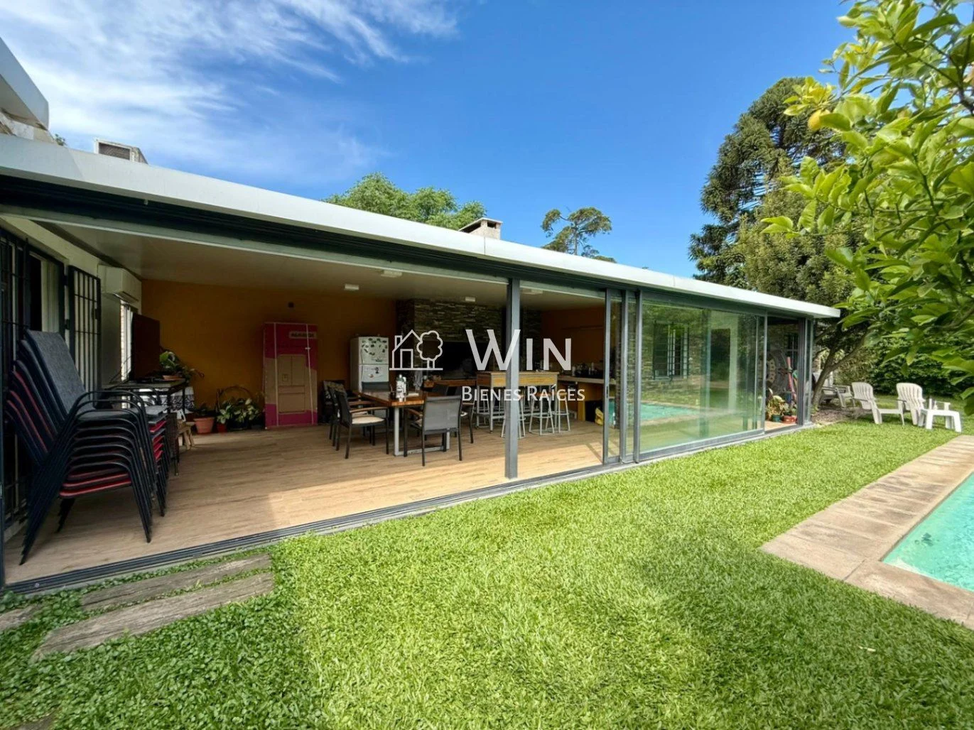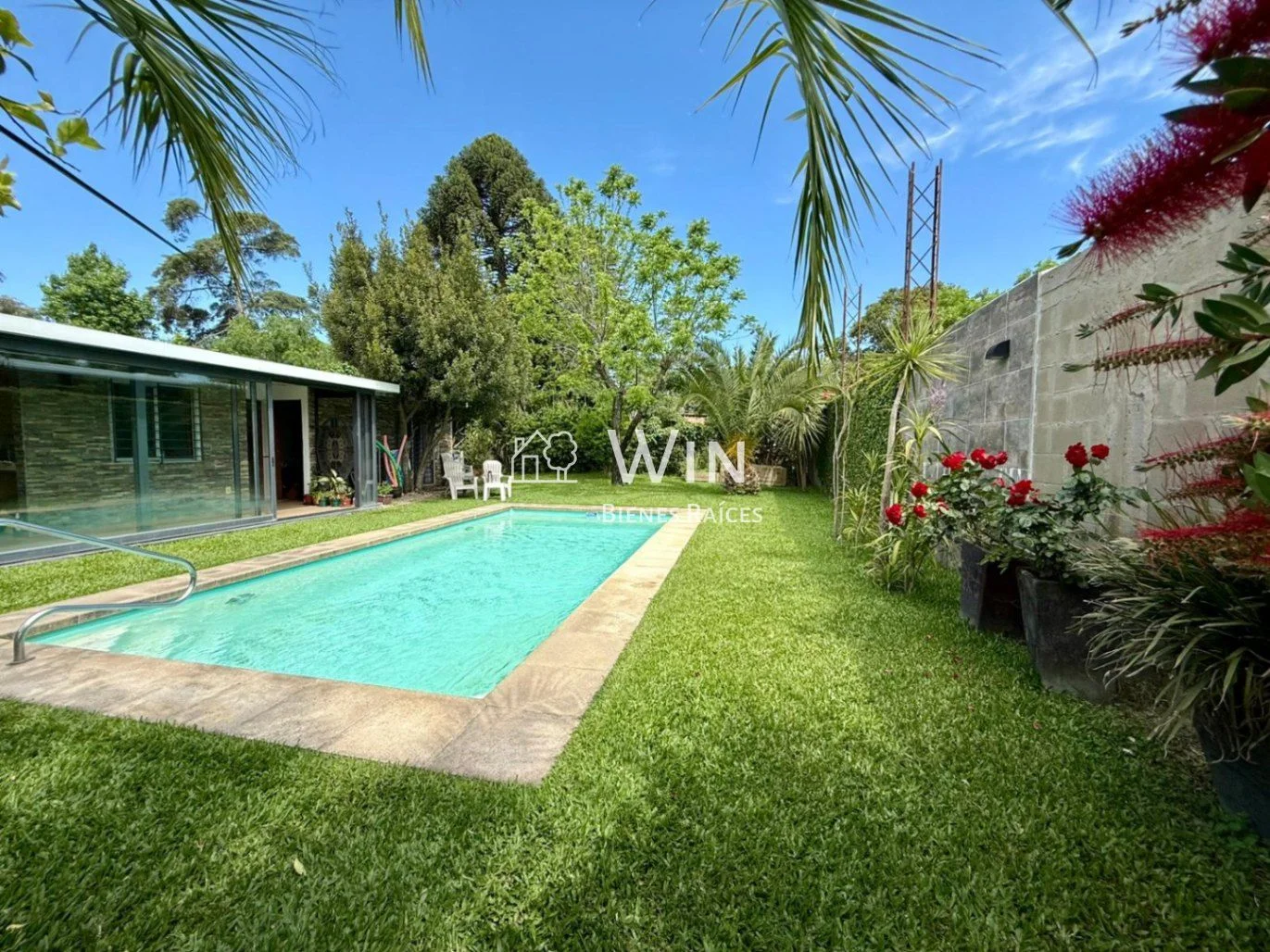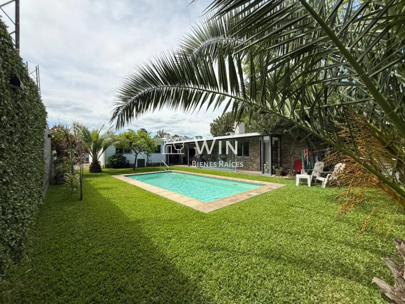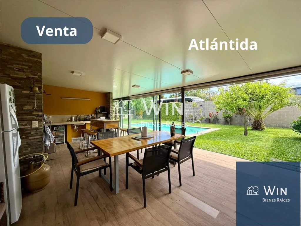 Venta de casa de 3 dormitorios en Atlántida. Padrón único. Casa principal de construcción tradicional: 3 dormitorios, un baño, living comedor con estufa a leña y amplia cocina. Aire acondicionado en todos los ambientes. Gran barbacoa cerrada de construcción liviana conectada a la casa, aire acondicionado. Gran dormitorio. Baño completo. Un lavadero que también sirve de depósito que podría ser un quinto dormitorio. Piscina climatizada. Fondo verde cuidado y riego. Huerta. Al fondo posee ducha exterior y un lugar de guardado de bicicletas. Al frente cuenta con espacio para estacionar varios vehículos. Conexión hacia el fondo.