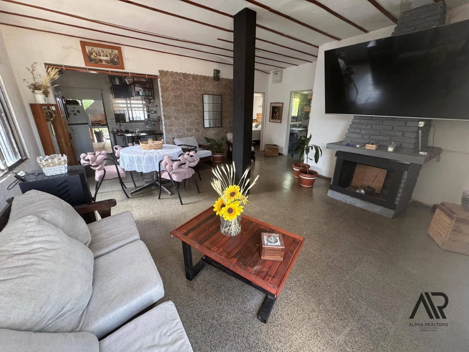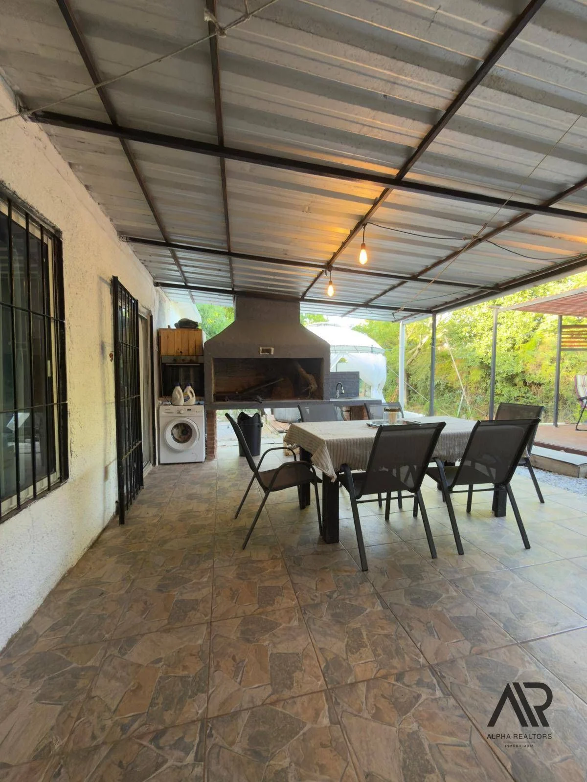Entre las características destacables, se encuentran el aire acondicionado y una chimenea que añade un toque de calidez en las noches frescas. El amplio patio y el quincho son ideales para reuniones y celebraciones al aire libre, mientras que el jacuzzi ofrece un espacio de relajación. La propiedad también está equipada con conexión a internet. Además, el área verde arbolada añade un atractivo natural al entorno.
