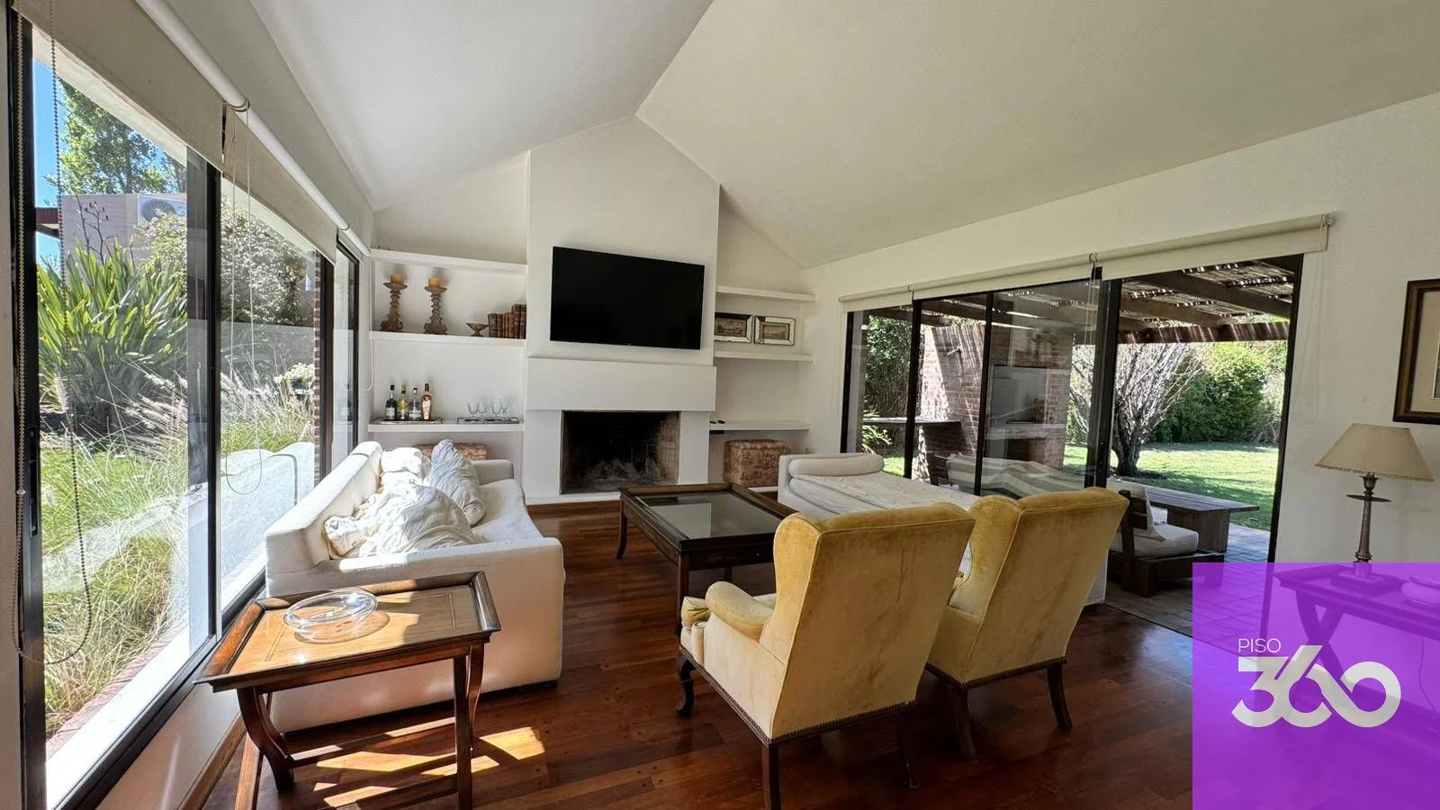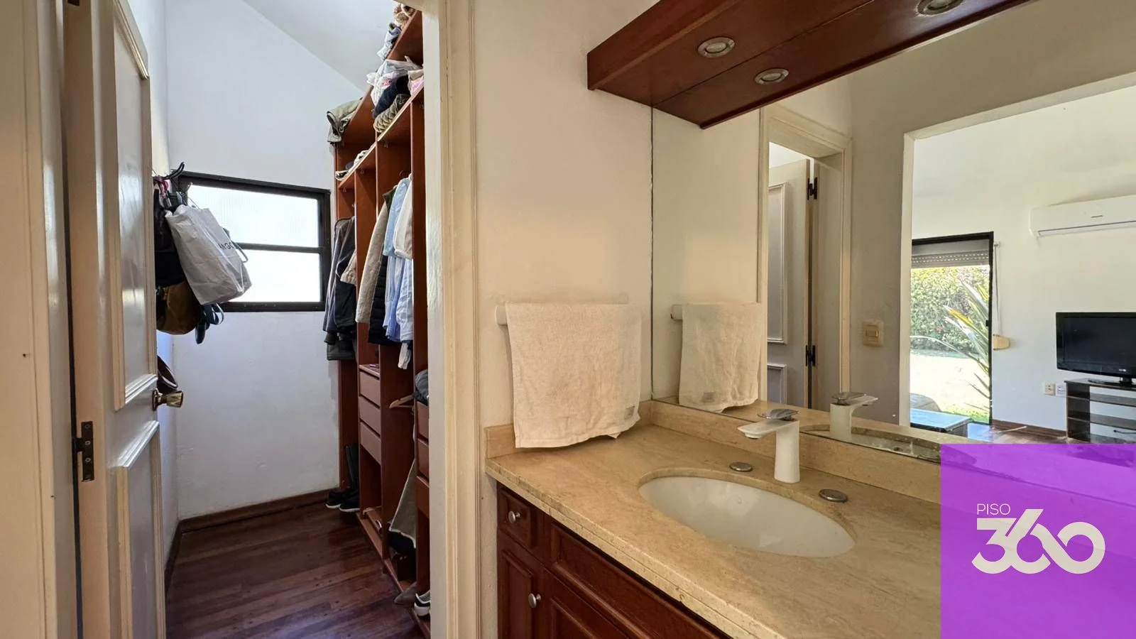 La propiedad cuenta con tres dormitorios, todos con orientación sur, donde el dormitorio principal se beneficia de un baño en suite y vestidor, mientras que los otros dos comparten un baño completo. Esta propiedad también ofrece un baño y cuarto de servicio, así como impresionantes vistas al campo de golf, que se extienden por todo el fondo del terreno. Los espacios exteriores son perfectos para disfrutar del aire libre, y la casa incluye comodidades adicionales como aire acondicionado y losa radiante eléctrica sectorizada por toda la casa.