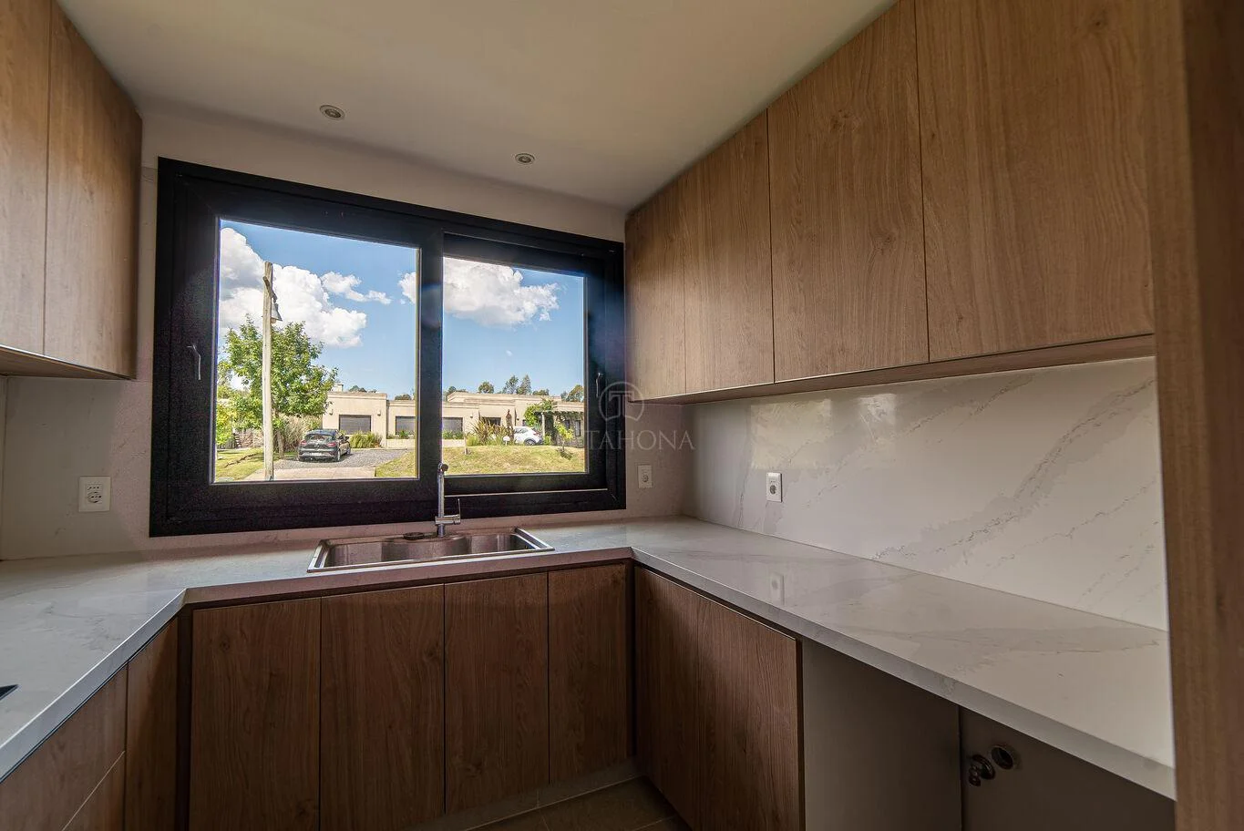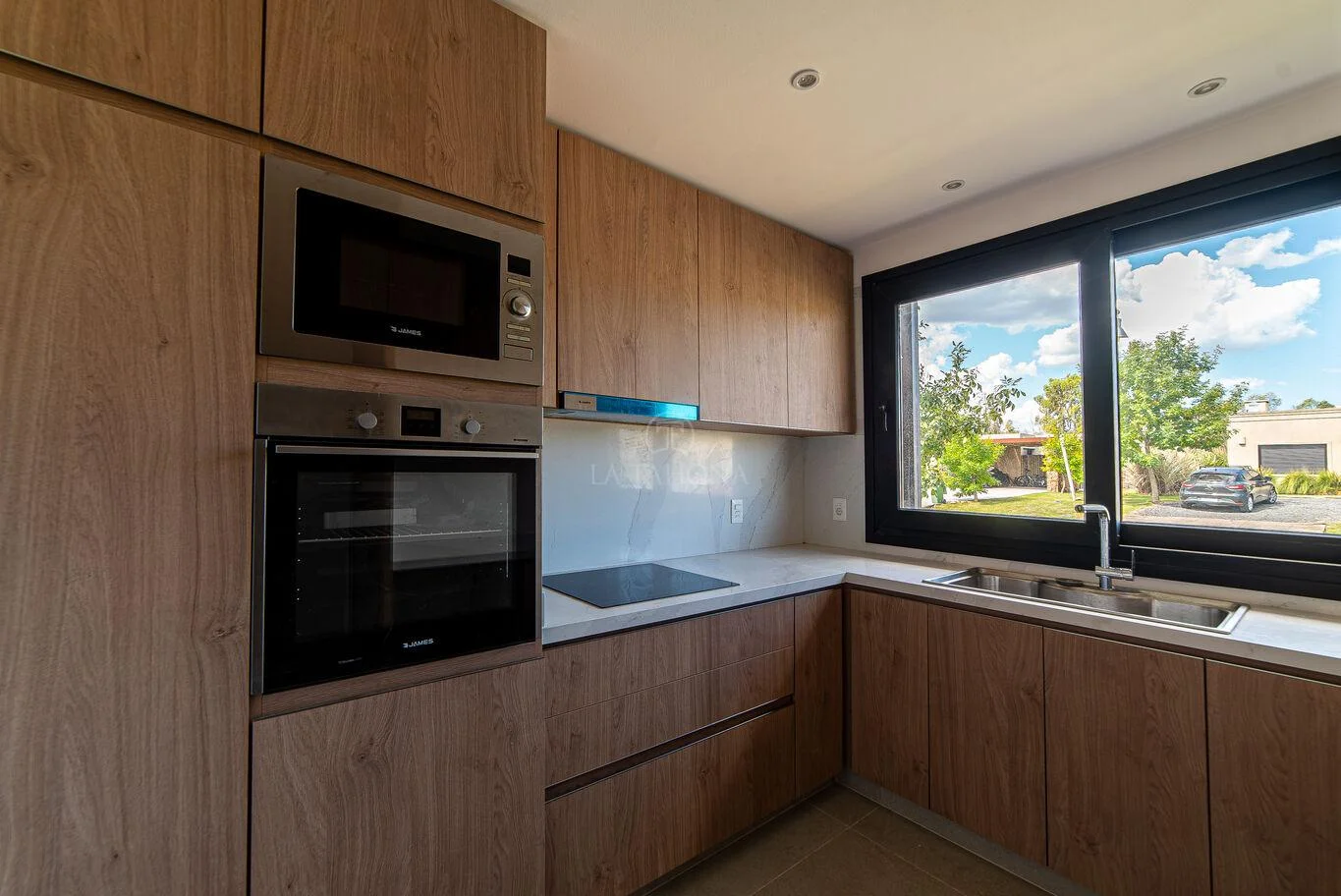 La casa se desarrolla en una planta y el área del terreno es de 1370 m².