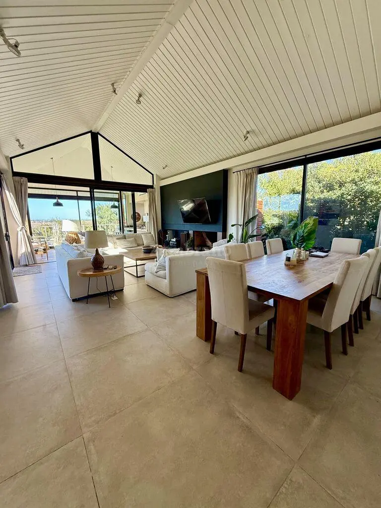 Toda en una planta, techos altos, moderna pero muy cálida, realmente linda.