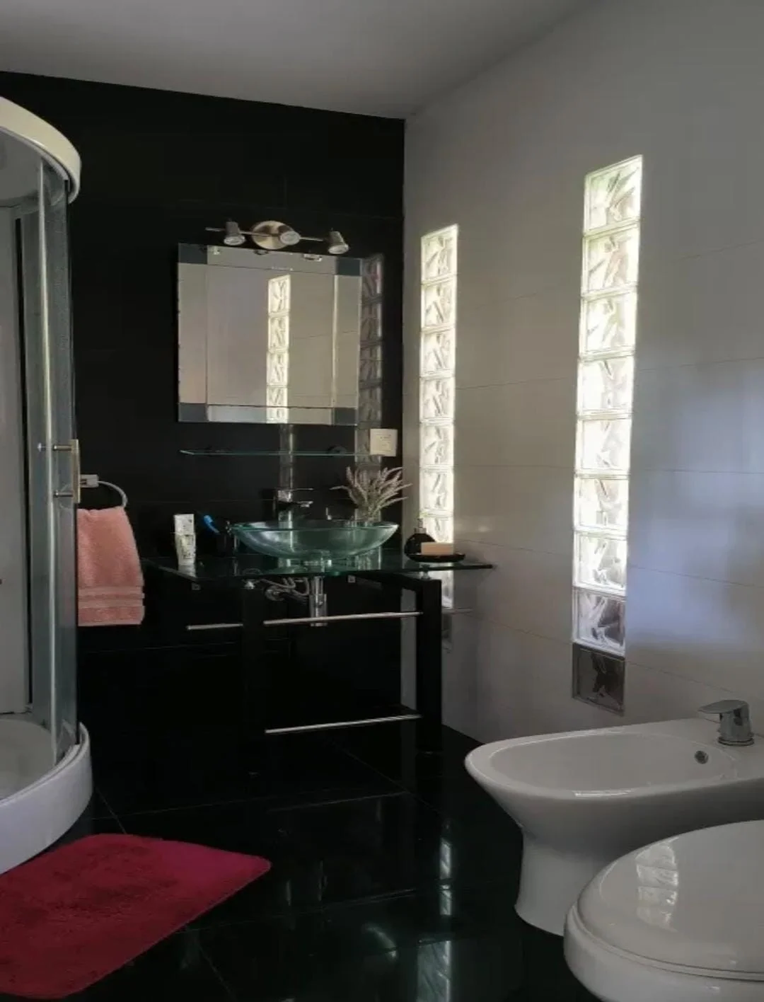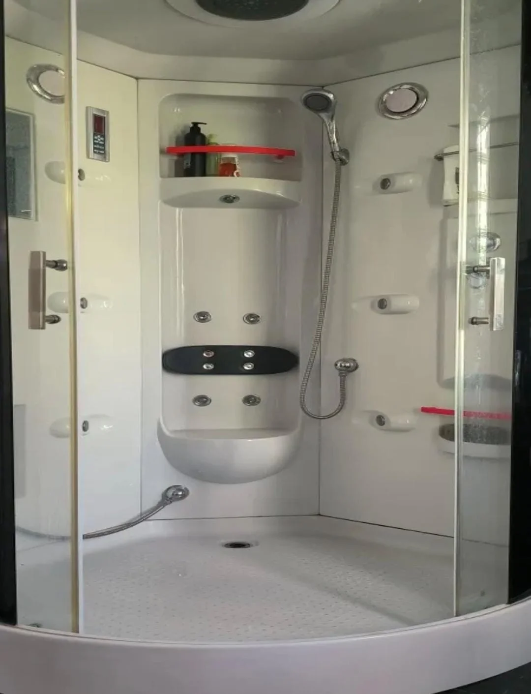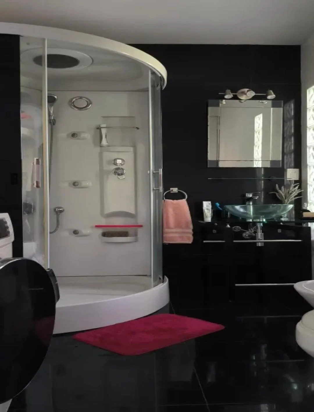 La cabina de ducha del baño es enorme con capacidad para 2 personas.