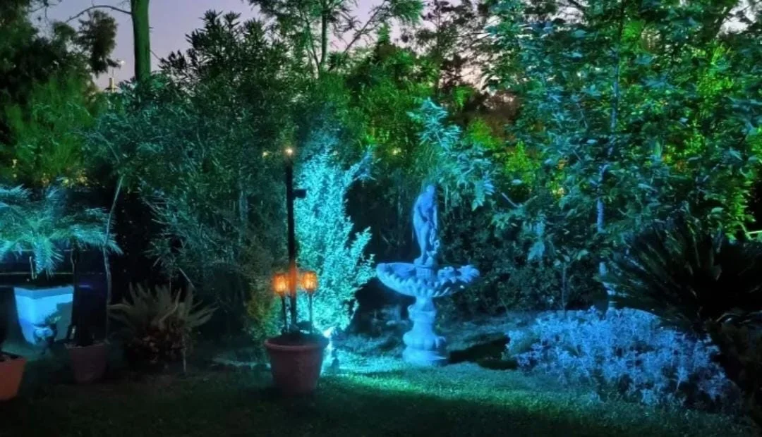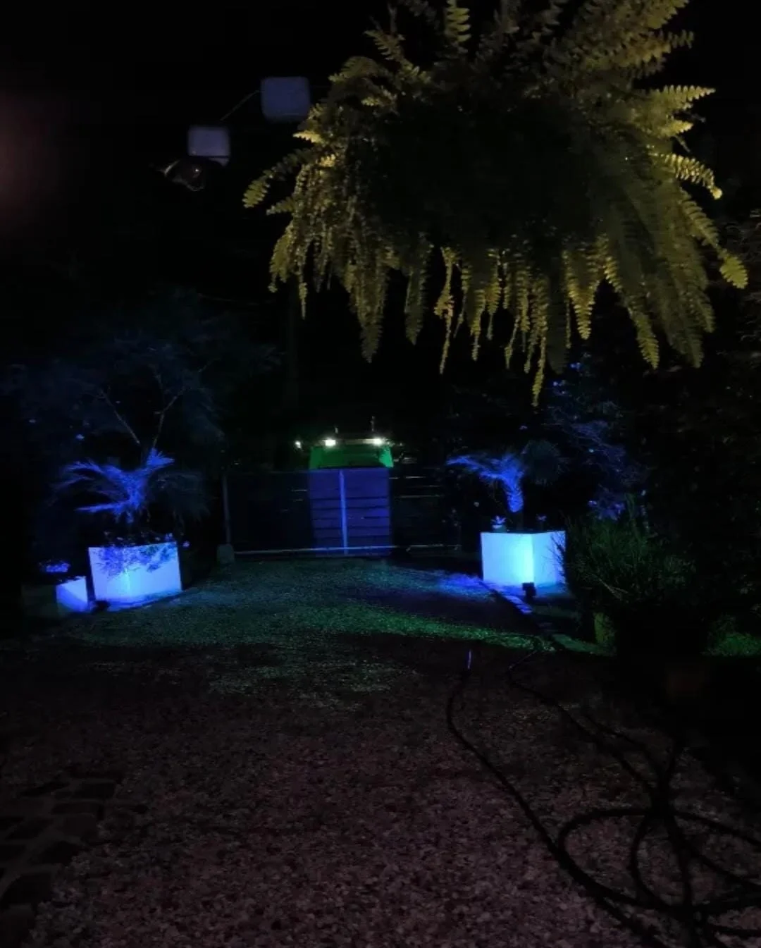Hay 4 cámaras de seguridad en los puntos principales conectadas a wifi con aviso de detección. El perímetro está todo bien cerrado y el portón tiene motor con control remoto. La fuente tiene bomba de agua y luces RGB. El jardín y la casa tienen luces con control remoto y/o inteligentes conectadas por wifi lo que hace disfrutar tanto de día como de noche.