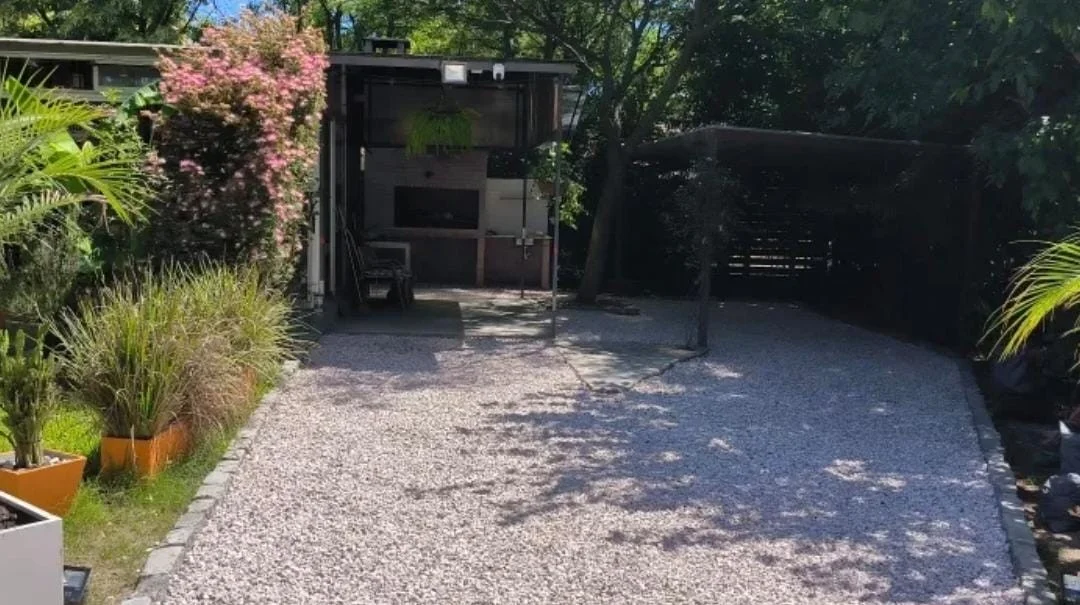 El Terreno es de 520 M2 pero adelante como se aprecia en las fotos con el camino tiene un segundo jardín bien cuidado de 600 M2 más, (es vereda) eso le otorga más naturaleza y tranquilidad al estar lejos de la calle.