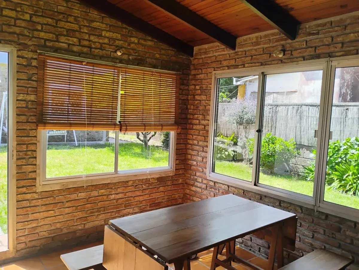 Cuenta con living con estufa a leña, cocina y comedor integrados, tres dormitorios con placares, baño renovado y previsión para estufa de alto rendimiento. Pisos monolíticos y flotantes, puertas corredizas de madera y sistema de agua con excelente presión, además de alarma perimetral e interior.