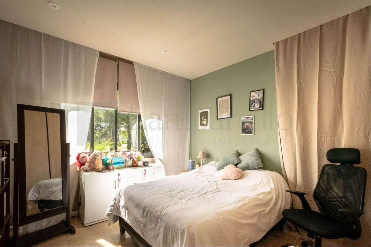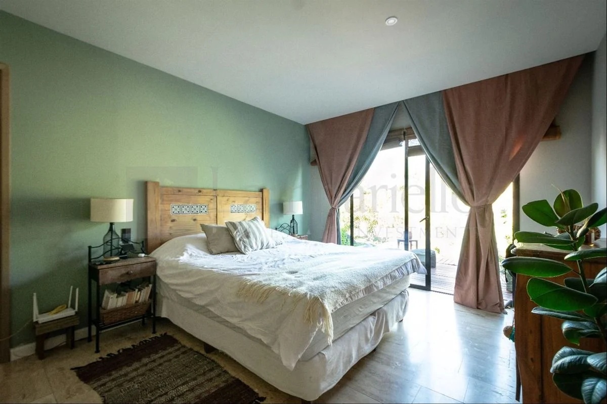 Dormitorio principal en suite con vestidor y acceso a jardín íntimo.