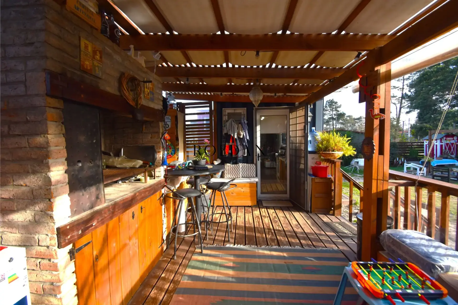 Living comedor con cocina integrados de 9x2.40 y dormitorio de 3x2.40. Baño completo agregado a las estructura de 1.2x 2. Parrillero exterior con deck de madera de 3.30x6.