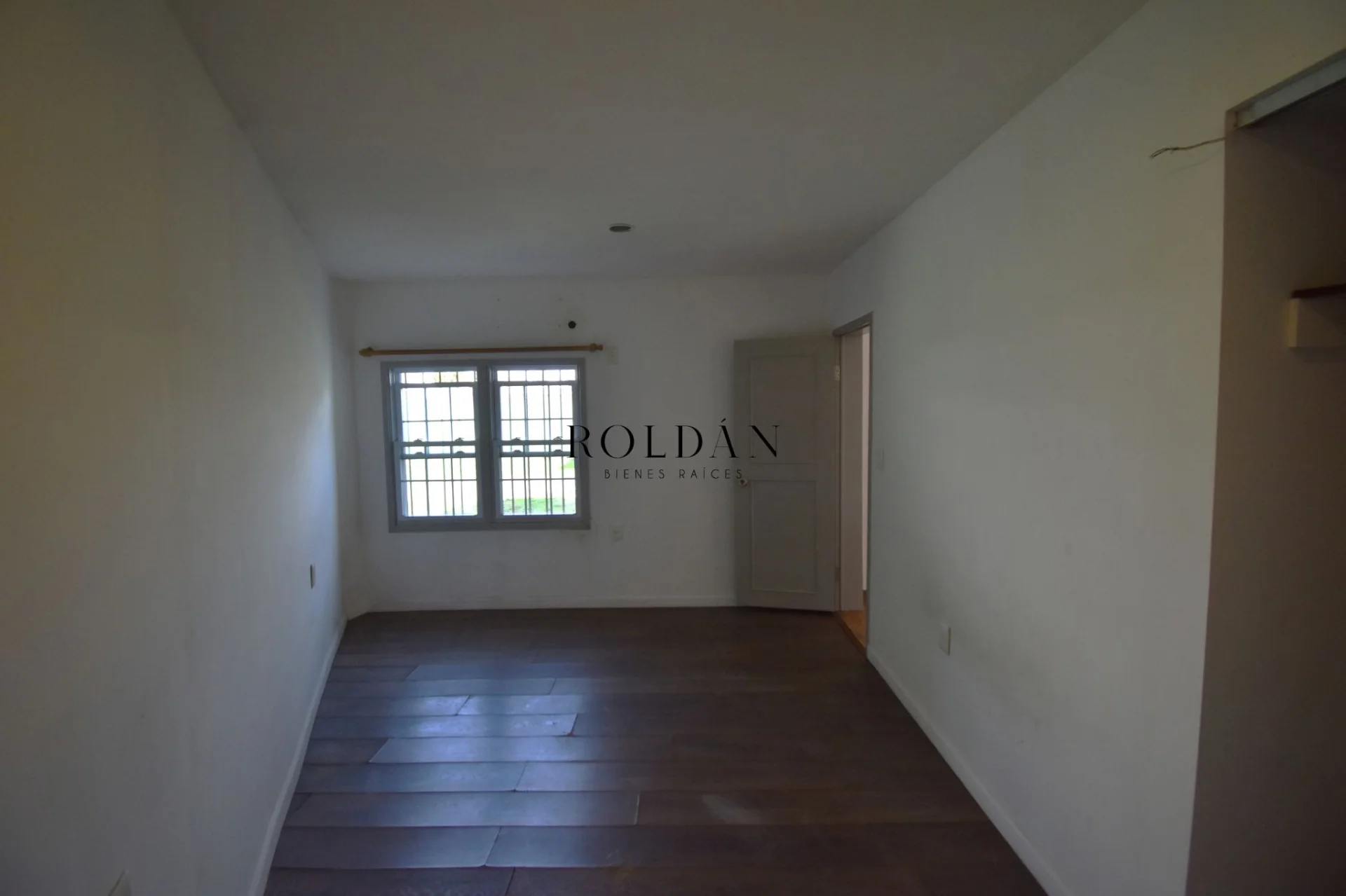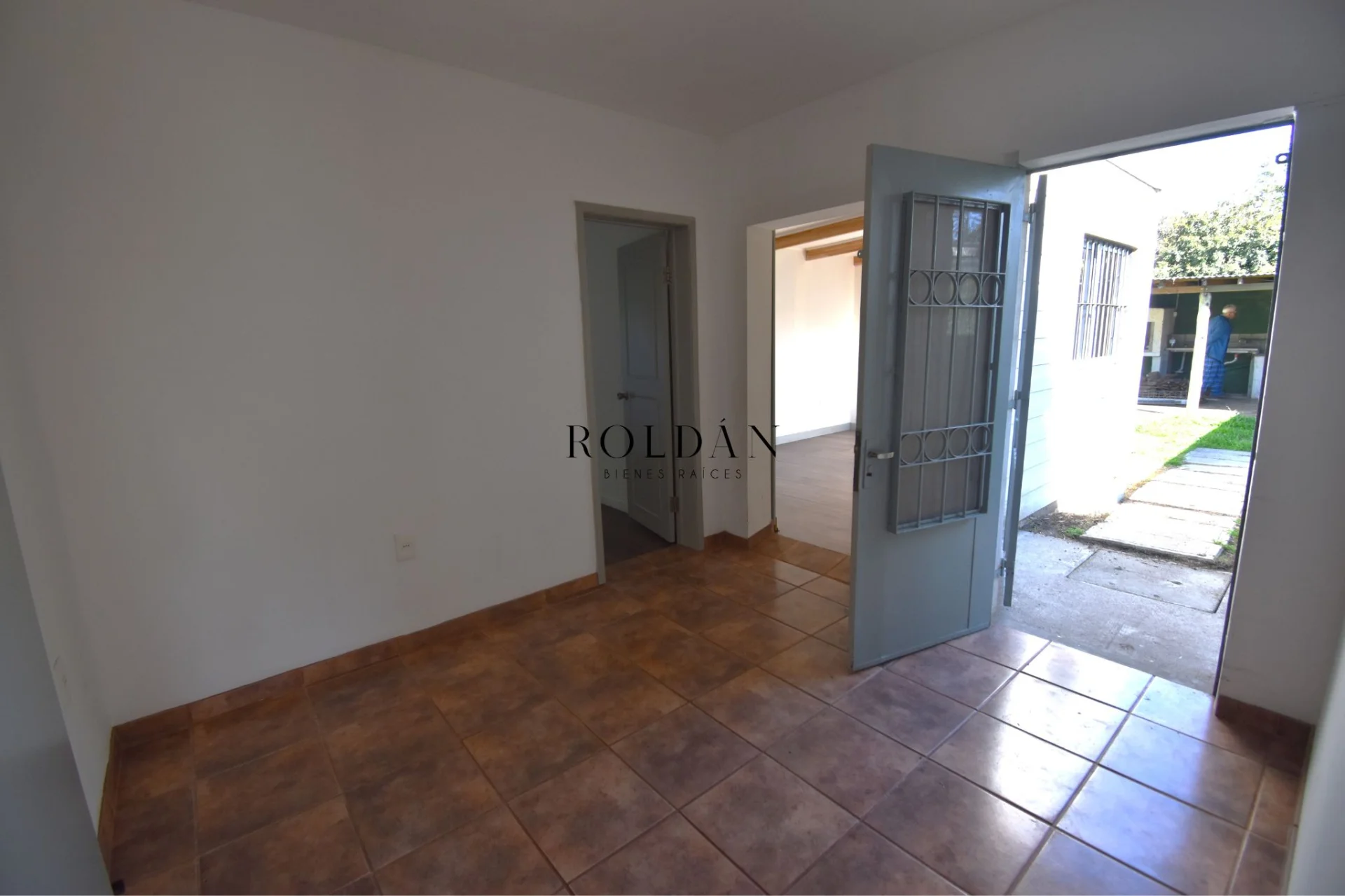 Ambiente central que comunica con ambos dormitorios, ambos con ventanas con rejas al amplio fondo verde, uno de ellos cuenta con mueble empotrado. Baño completo espacioso. Amplio fondo verde con parrillero techado, muros altos que permiten gran privacidad con sus vecinos.