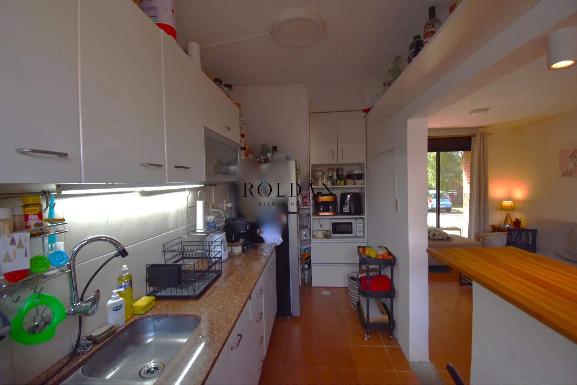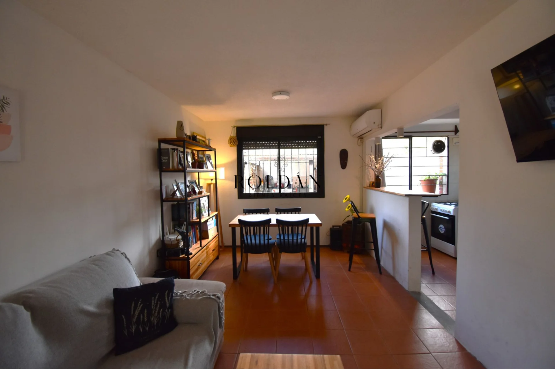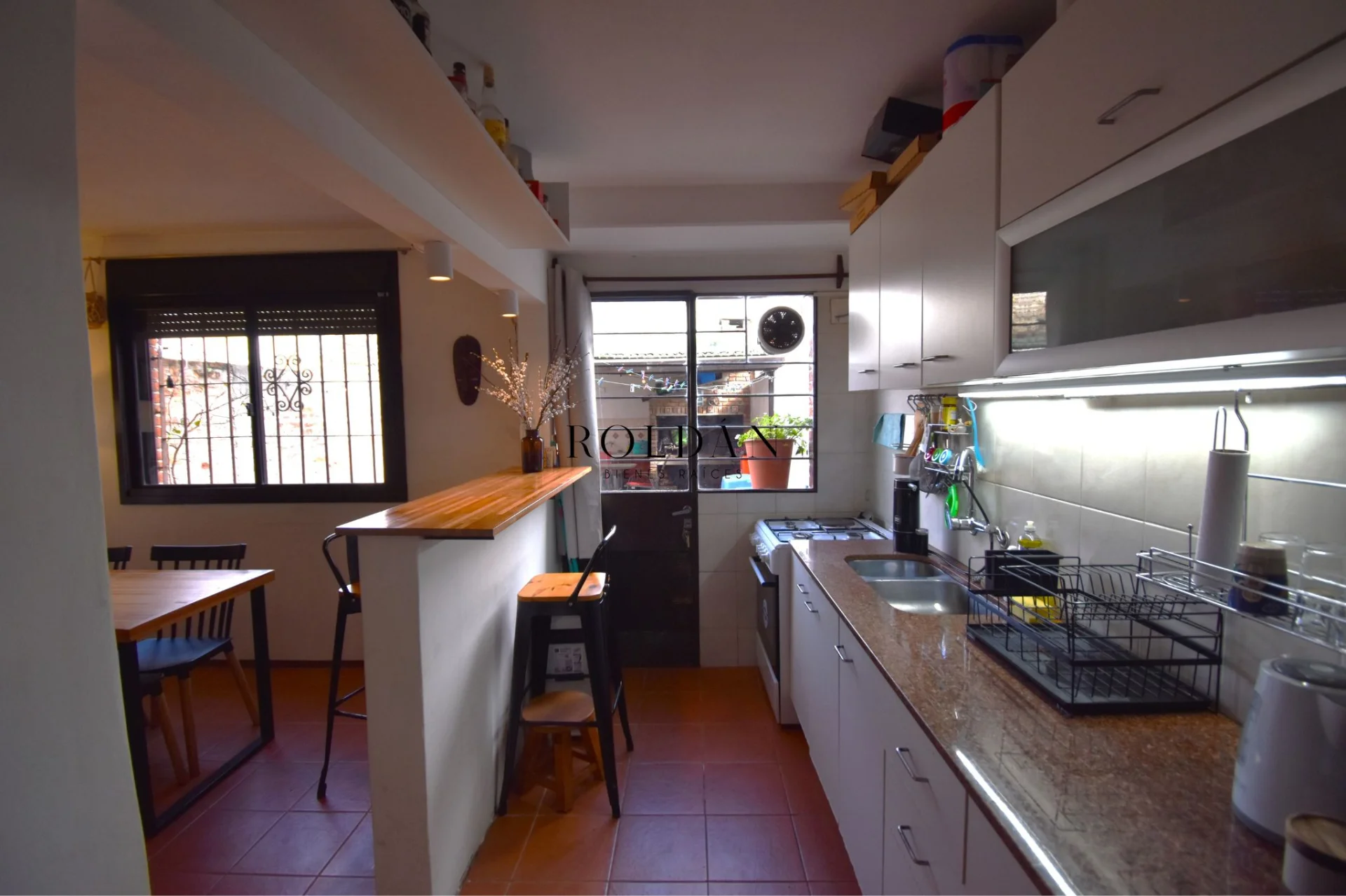 Planta baja donde se desarrolla el living comedor con ventanas con persianas a la calle interna del complejo y al fondo de la propiedad, aire acondicionado. Cocina semi integrada con muebles aéreos y bajo mesada, barra desayunador, puerta que permite acceso al fondo de la propiedad muy disfrutable con parrillero techado y área de lavadero.