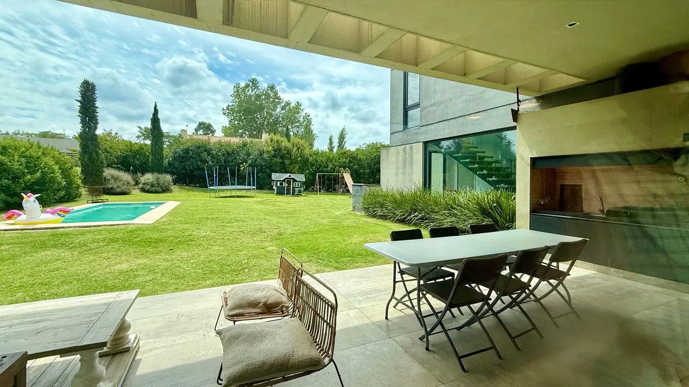 Pergola techada con parrillero a la cual se accede desde el livingki comedor.