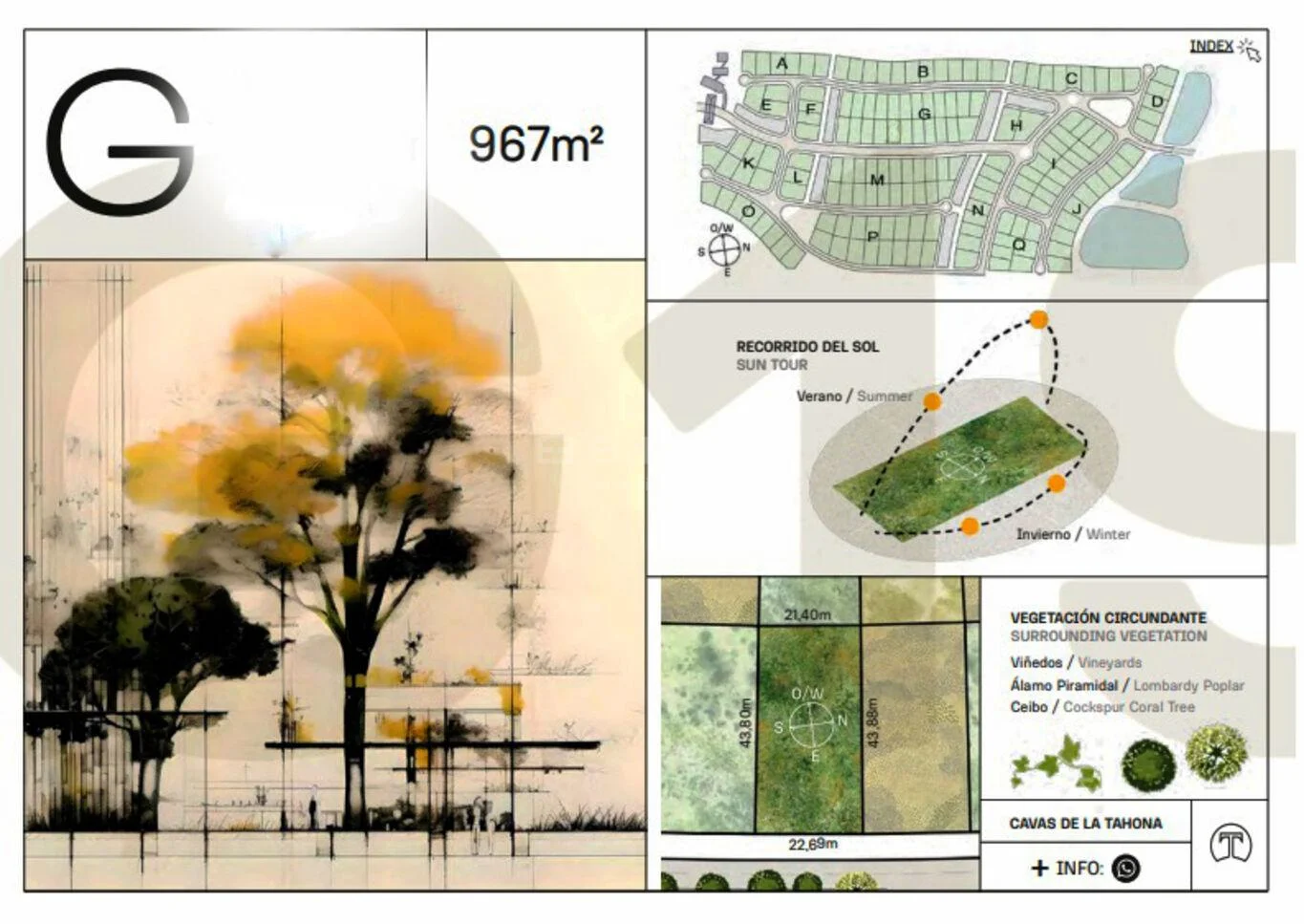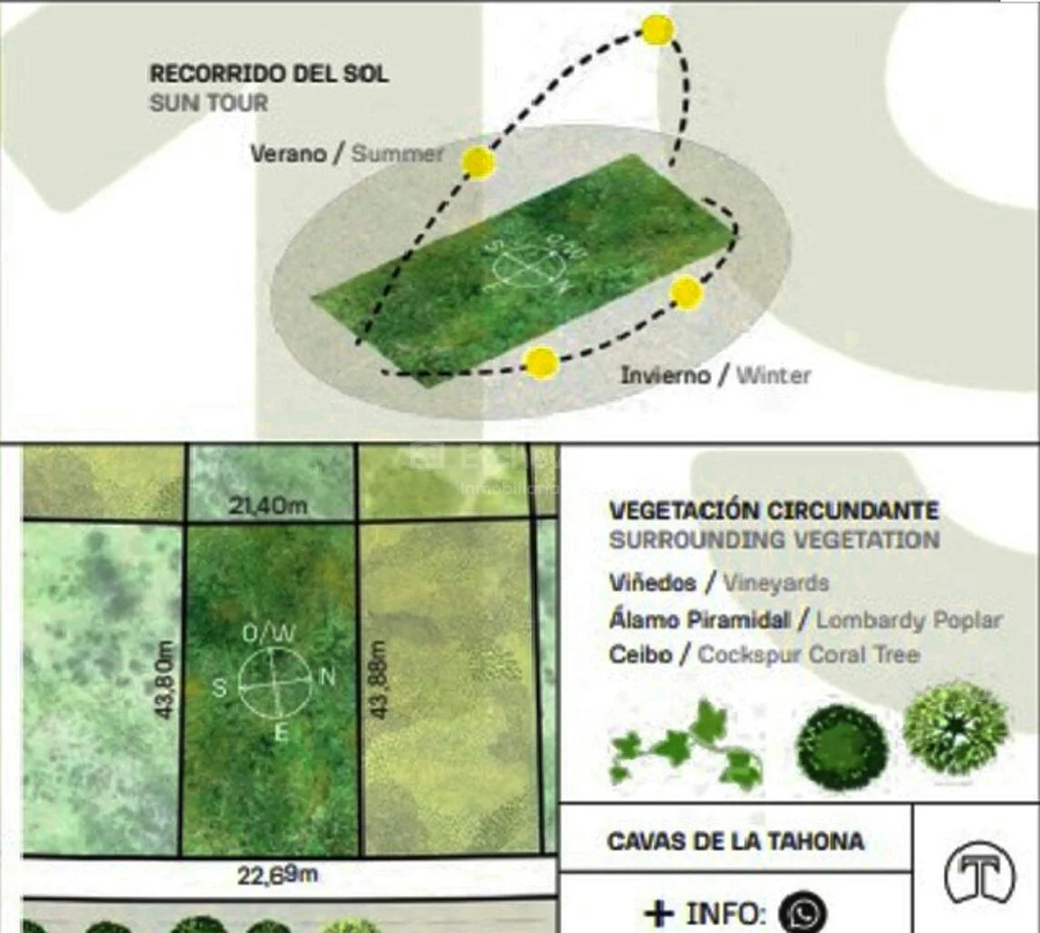 El lote que ofrecemos pertenece a la primera etapa de la zona G, un sector muy atractivo del barrio. Mide aproximadamente 22,7 m de frente por 43,8 m de profundidad, con orientación este y excelente asoleamiento norte durante todo el día.