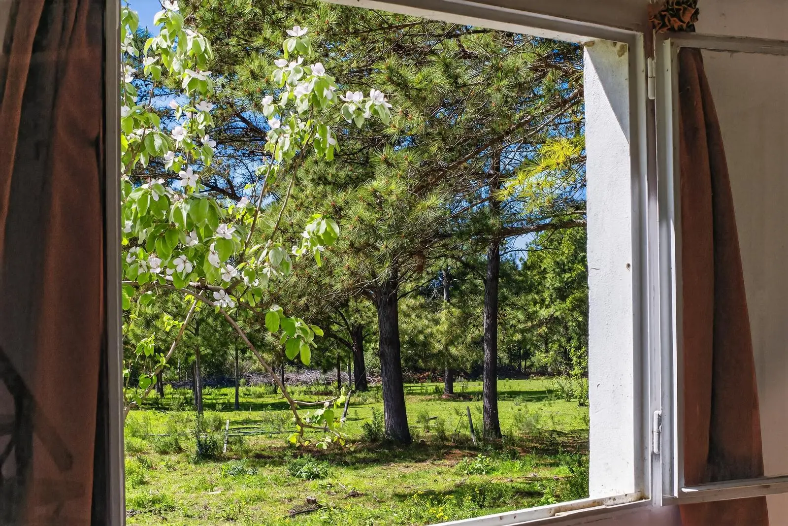 Tajamar de buen tamaño, ideal para disfrutar y aportar biodiversidad al predio Monte de pinos que brinda sombra, refugio y carácter al lugar