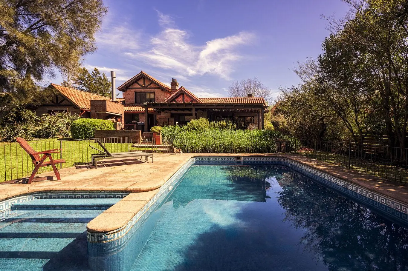 Piscina y solarium y gran jardin con paisajismo.