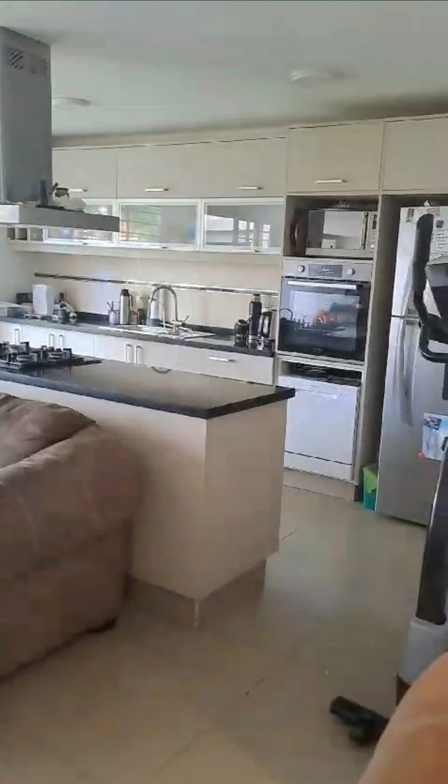 - Cocina: La casa cuenta con una cocina integrada al espacio del comedor con una isla, mesadas de granito negro, modernos y espaciosos muebles de diseño de excelente calidad (comprados en bagno and company).