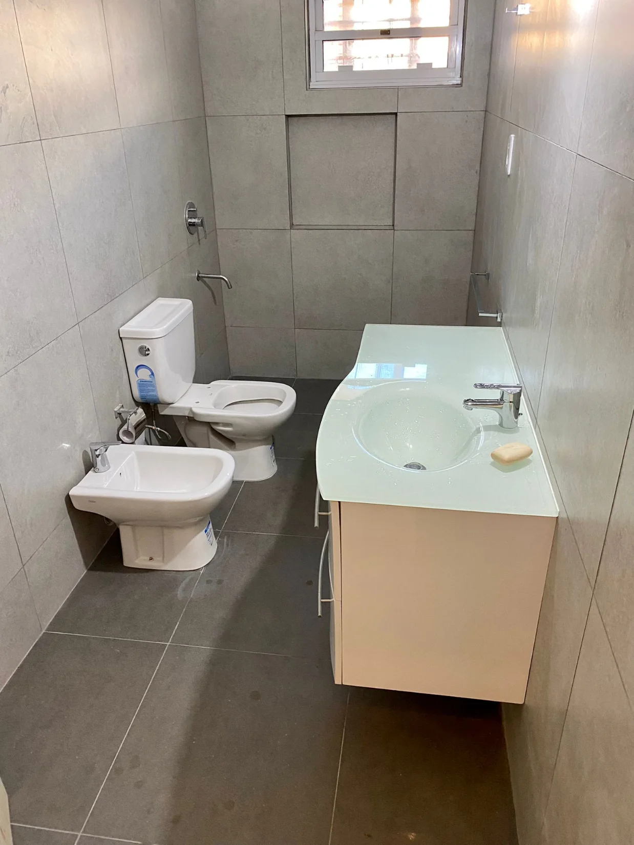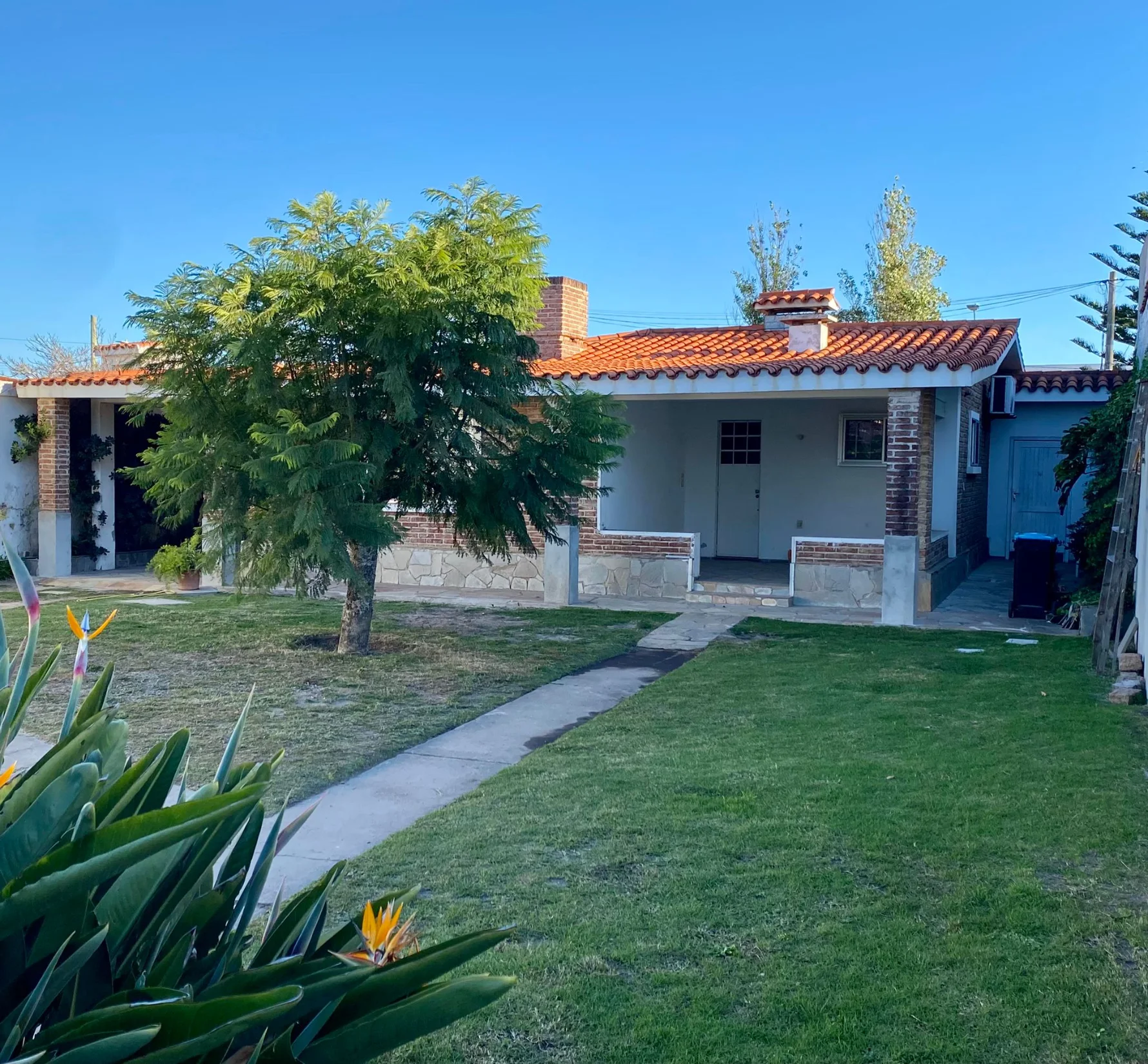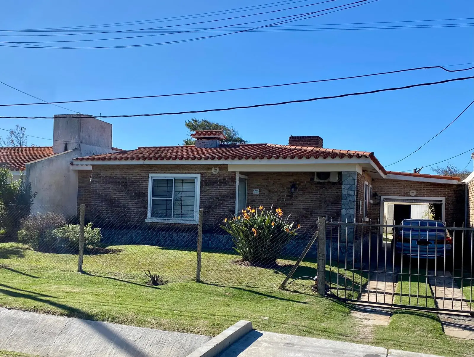 Casa con living c/estufa a leña, cocina definida, 2 dorm + 1 dorm y baño al fondo, baño principal, placares y patio diario.