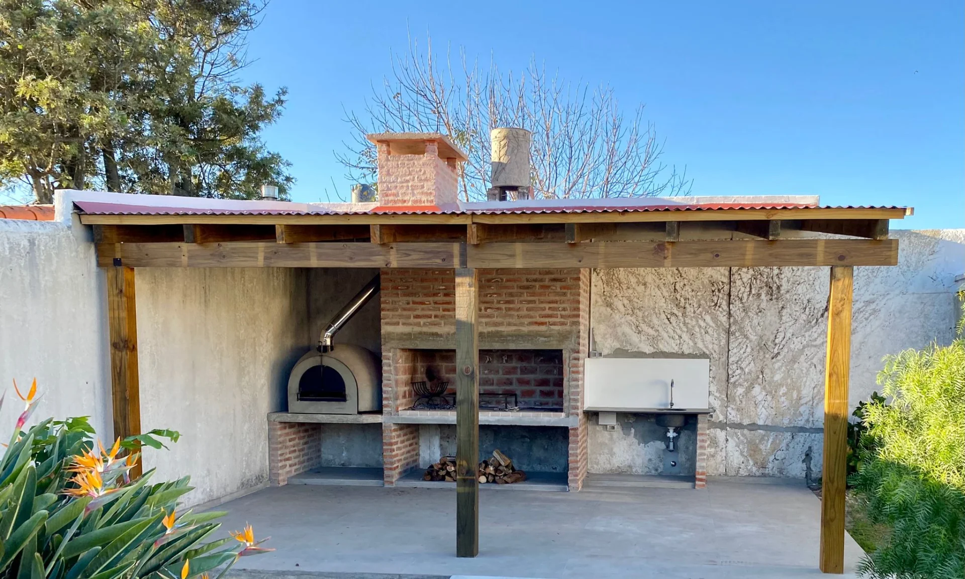 Fondo con parrillero y horno de pizza. Garaje y cochera .