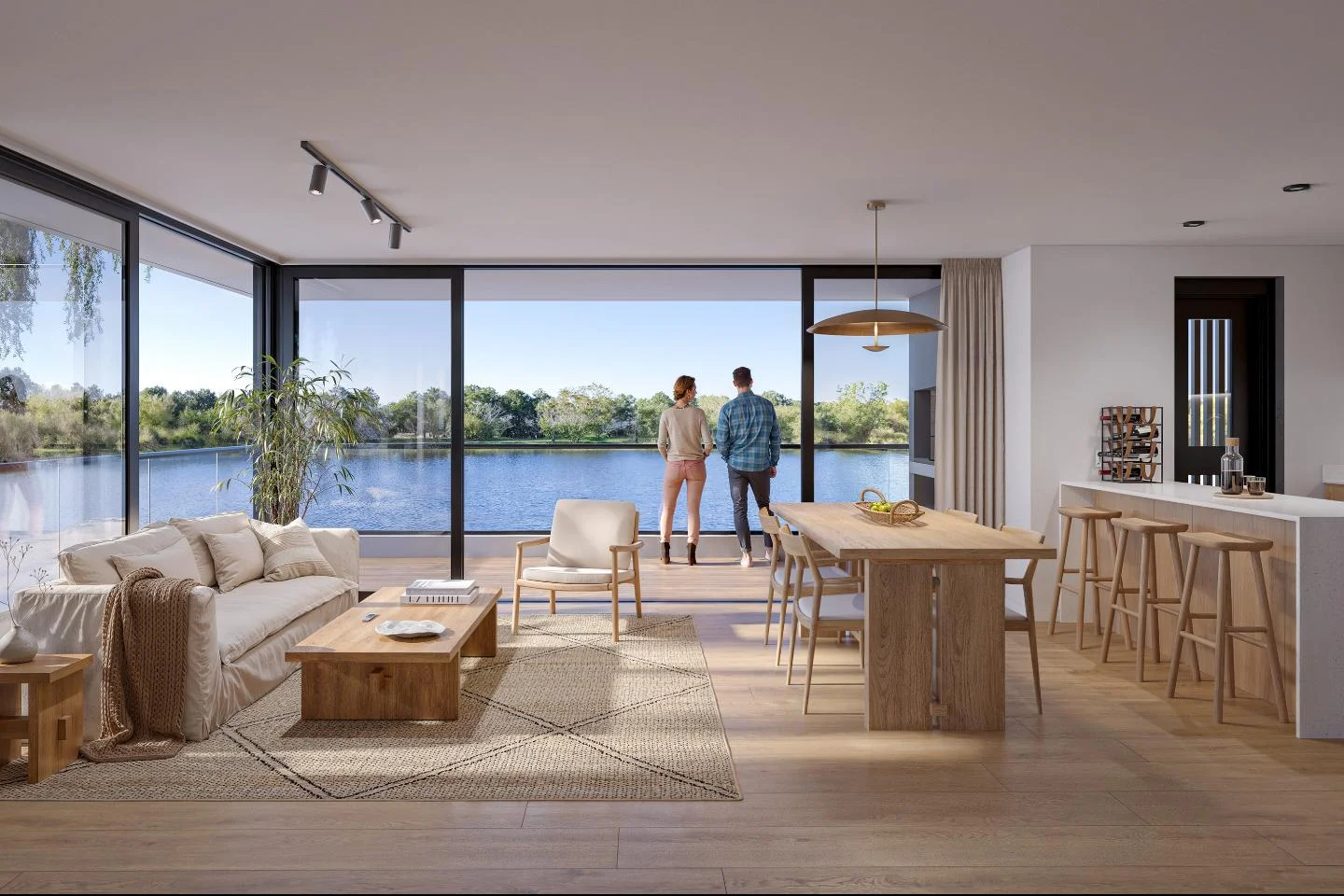 Las unidades de 1, 2 y 3 dormitorios se destacan por sus amplios metrajes, ventanales que enmarcan vistas al lago o al parque, y terminaciones de alta calidad. Algunas incluyen parrillero propio, ideales para disfrutar el paisaje en total privacidad.