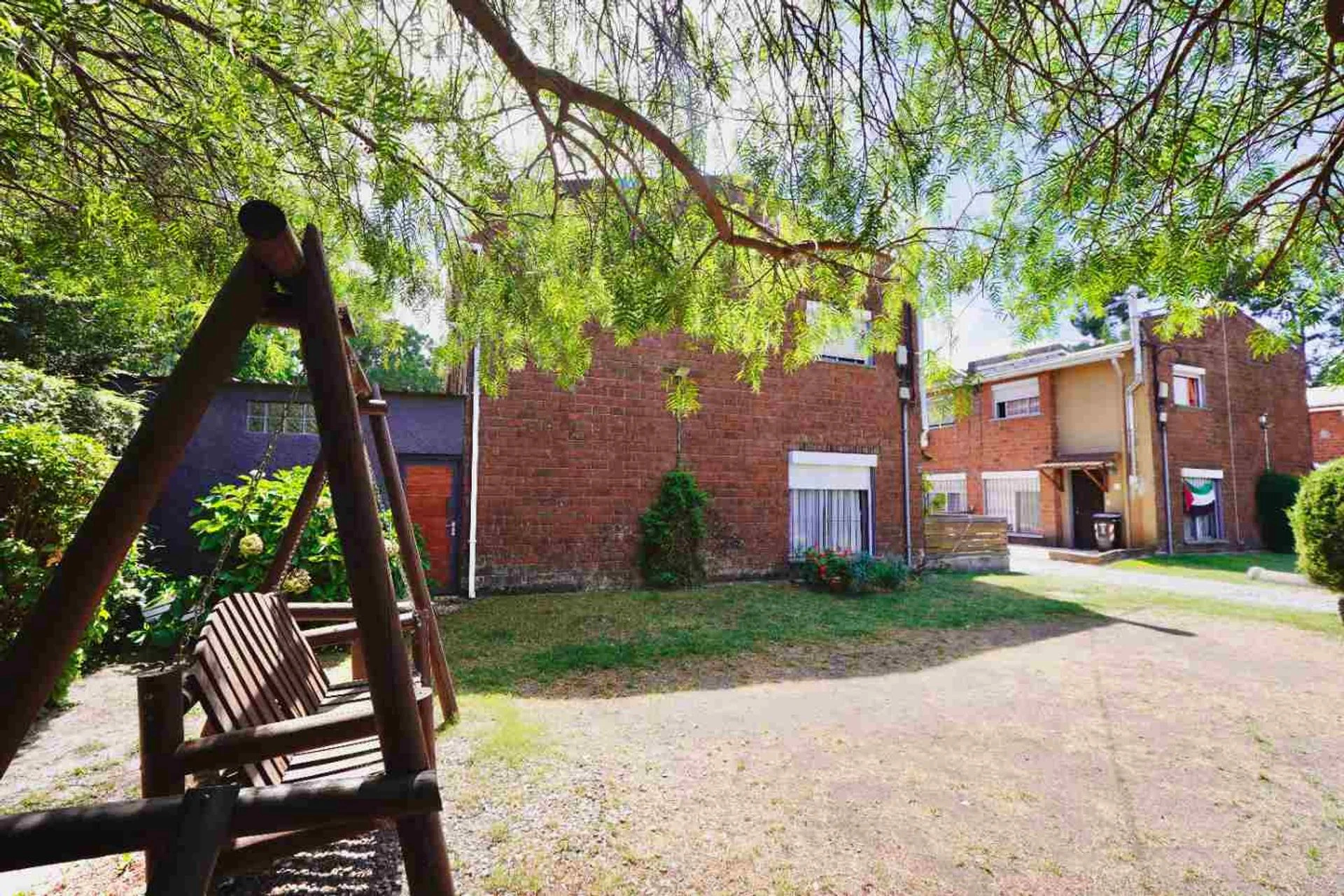 Parque con juegos para niños y espacios verdes.