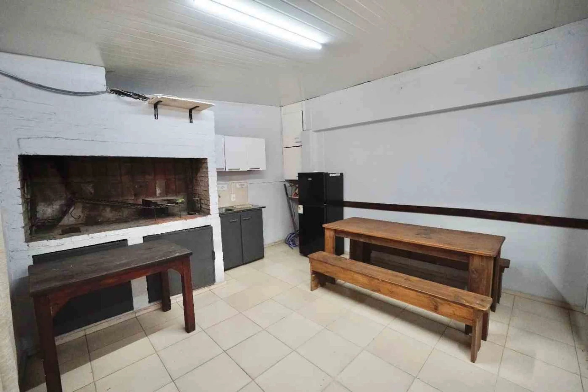 Salón comunal con parrillero y baño social.