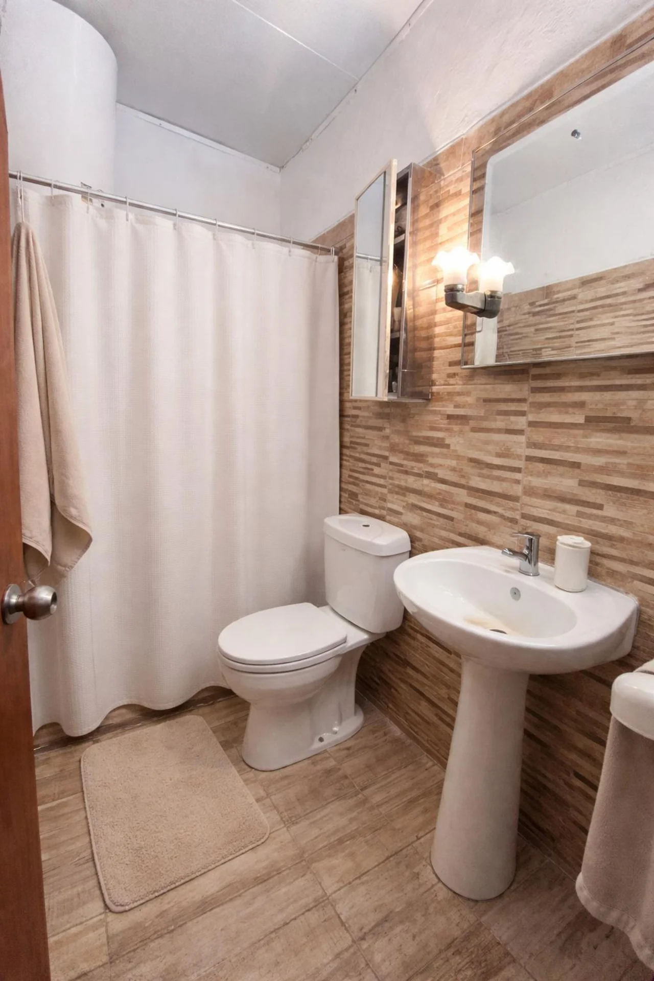 El interior revela un ambiente luminoso con pisos de porcelanato que simulan madera, creando una atmósfera cálida y sofisticada. Techos de isopanel garantizan una temperatura ideal, mientras la ventilación cruzada permite que cada rincón respire libertad.