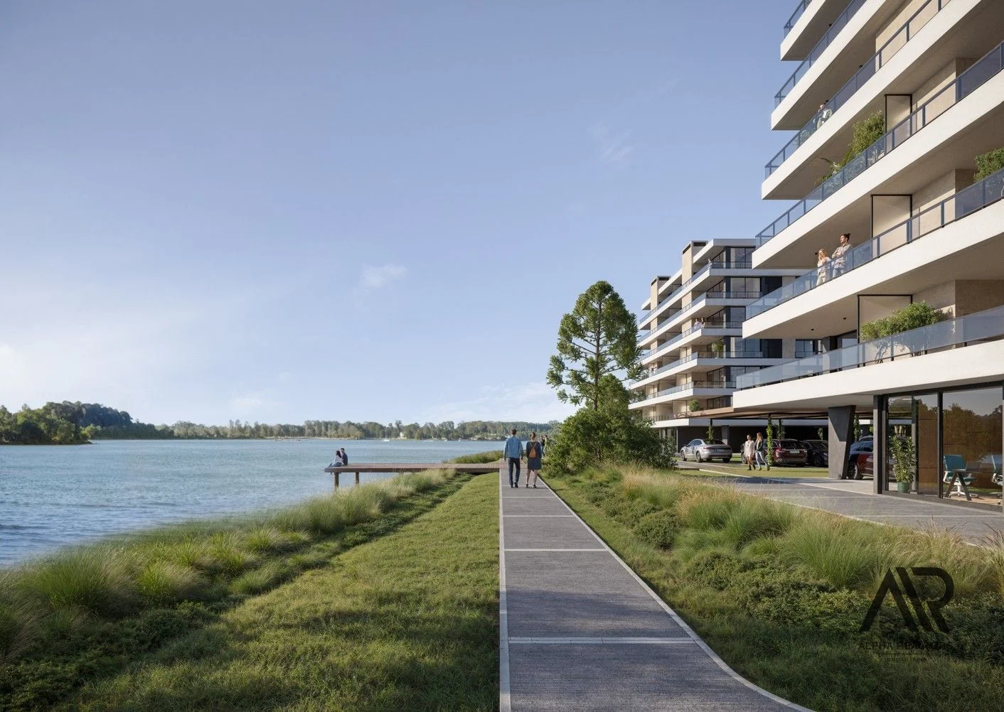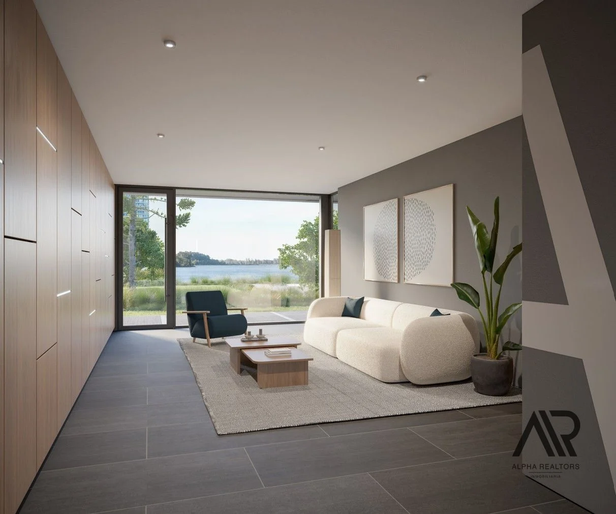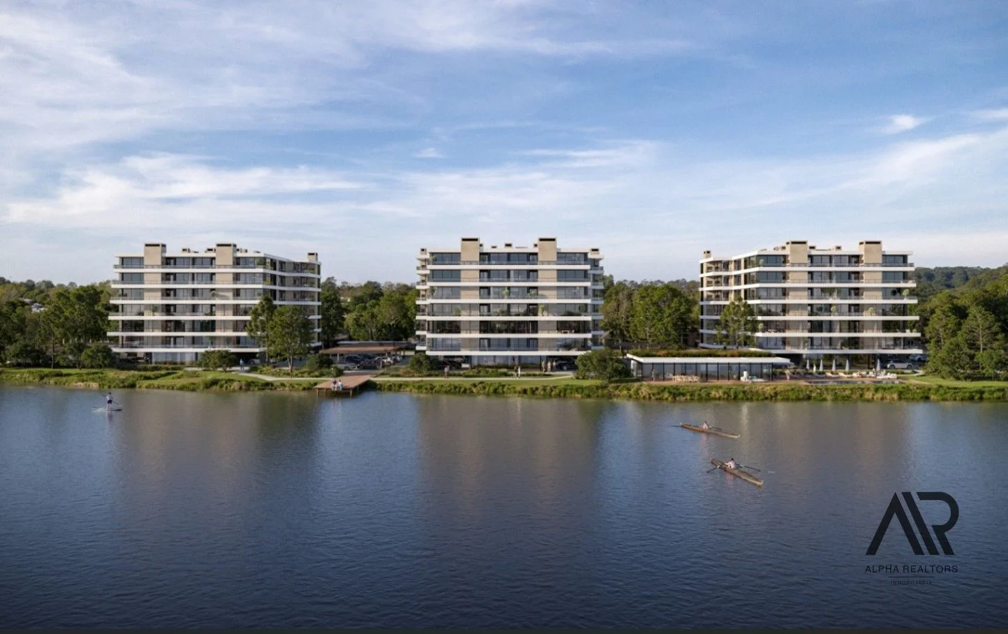 Sobre la costa del Lago Calcagno, tres torres de diseño exclusivo con vistas abiertas, piscina exterior, muelle privado, amplios espacios comunes y una conexión única con la naturaleza.
