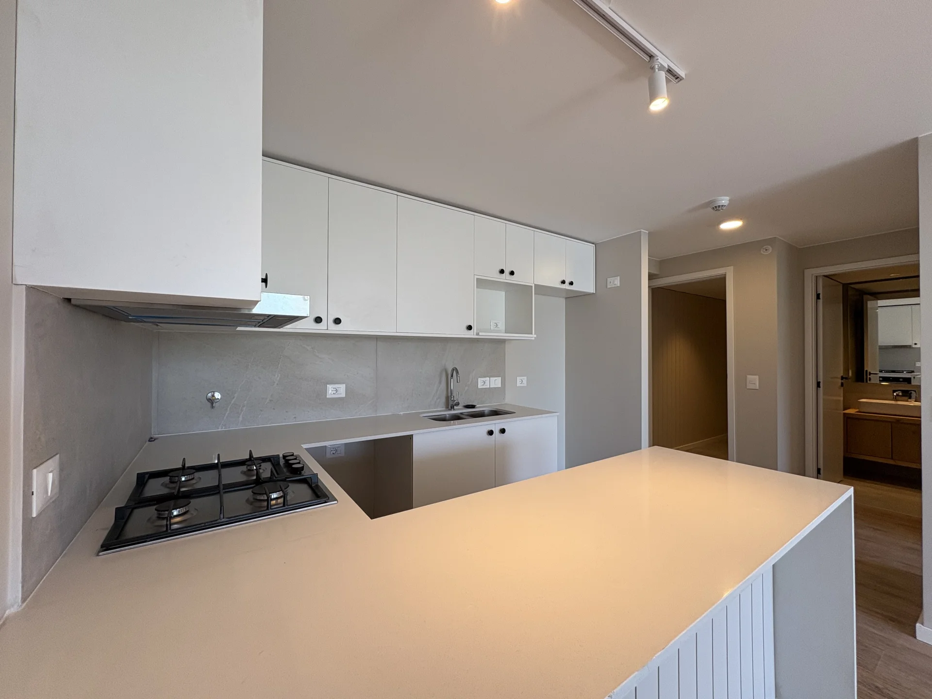 Amplio living comedor con cocina integrada a traves de una barra. Incluye horno, anafe y campana.
