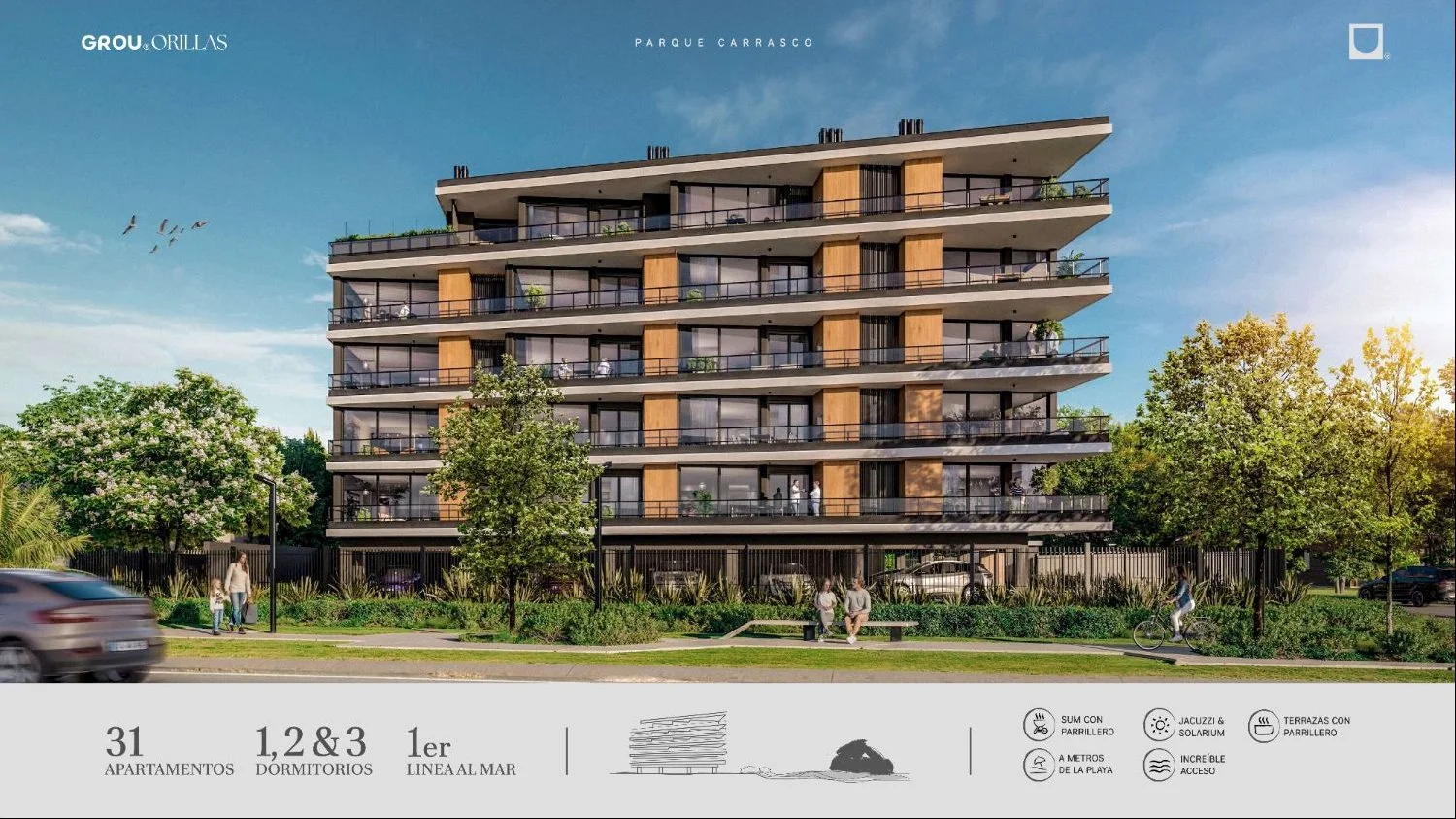 PARQUE CARRASCO Proyecto GROU Orillas, sobre primera línea de la Rambla frente a la playa, en un entorno de naturaleza, a pasos de centros comerciales: Geant, Macromercado y a 5 minutos de Carrasco, Entrega: Noviembre 2027