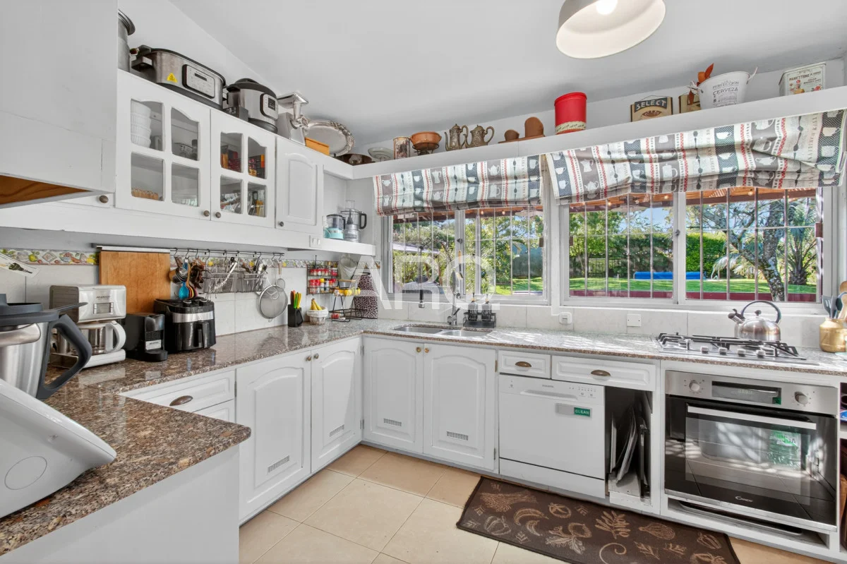 La vivienda combina calidez tradicional con practicidad: sin escaleras y distribución pensada para convivencia familiar. Cuenta con tres dormitorios luminosos (uno en suite) y cuatro baños con ventilación natural.