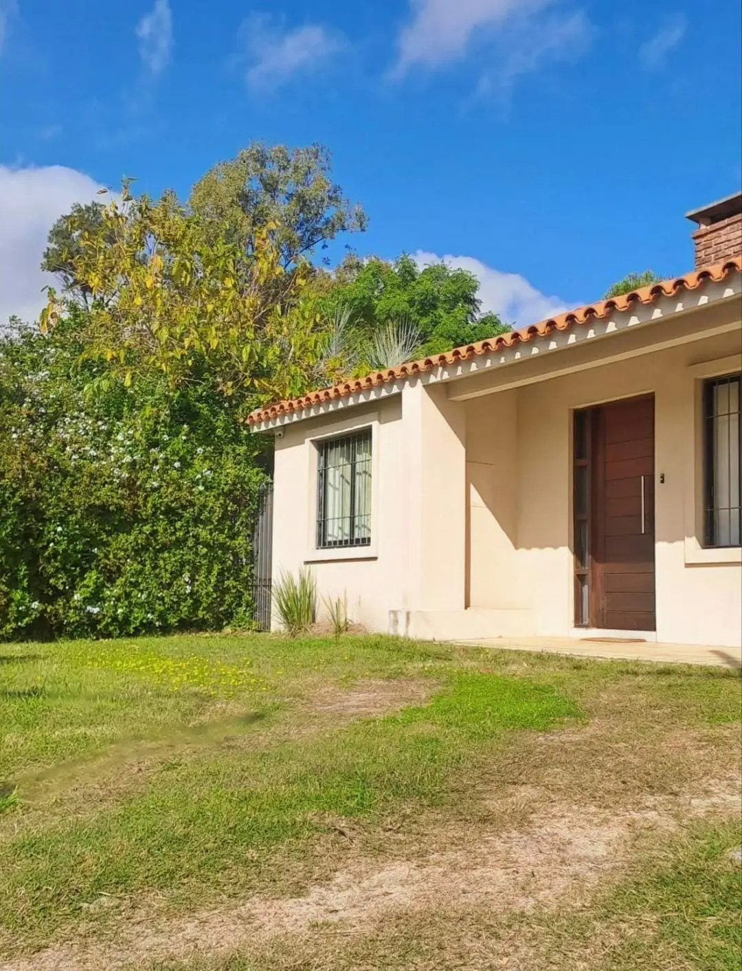 La casa tiene entrada lateral por portón de rejas de hierro, por lo que