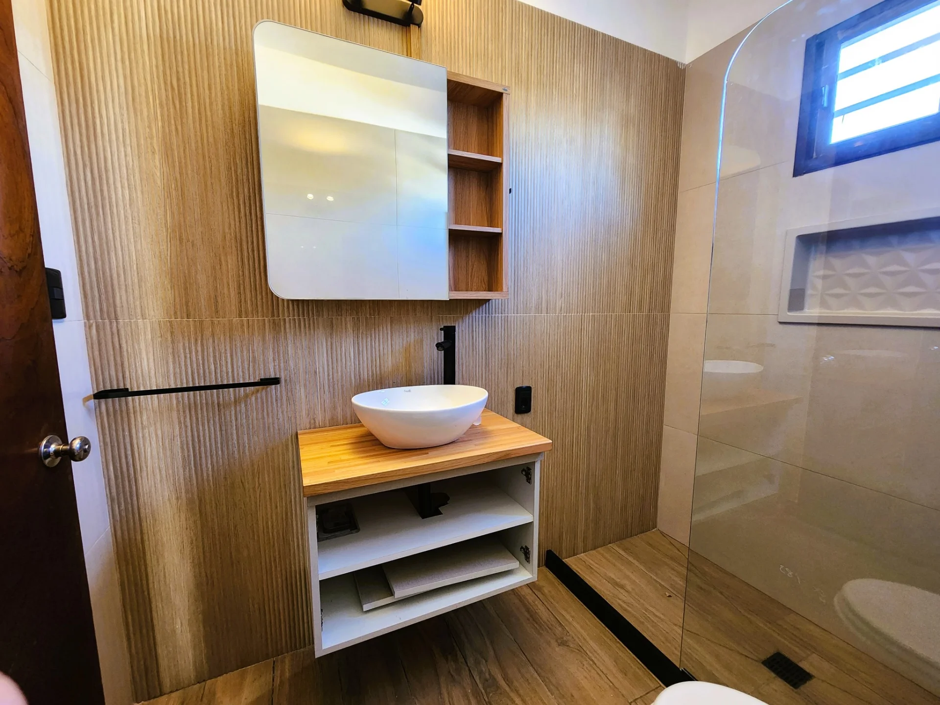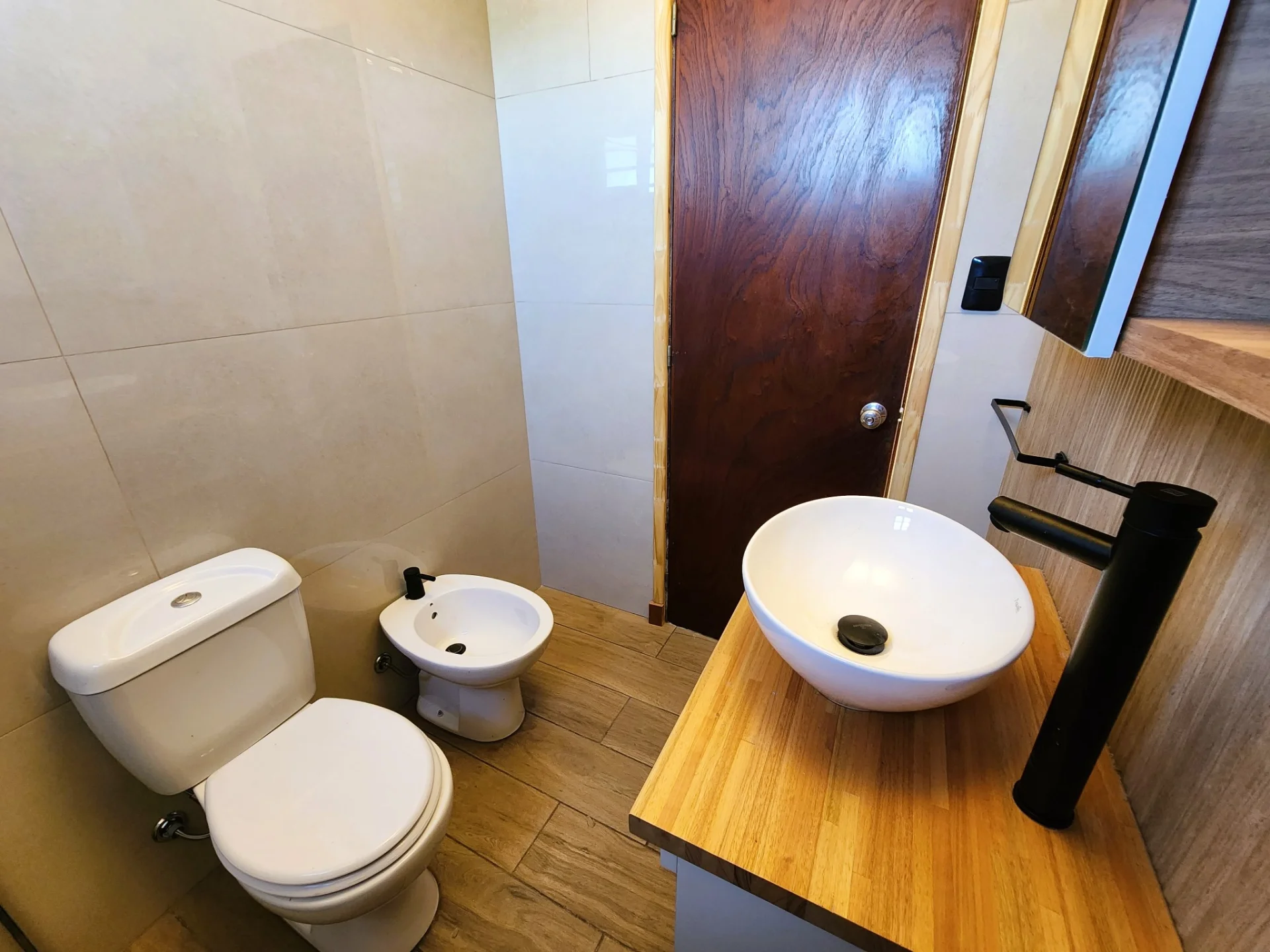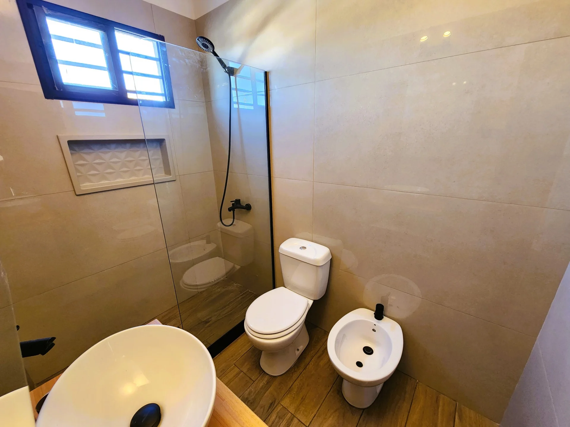 2 Dormitorios con piso flotante, principal con Aire Acondicionado. Baño completo reciclado a nuevo.