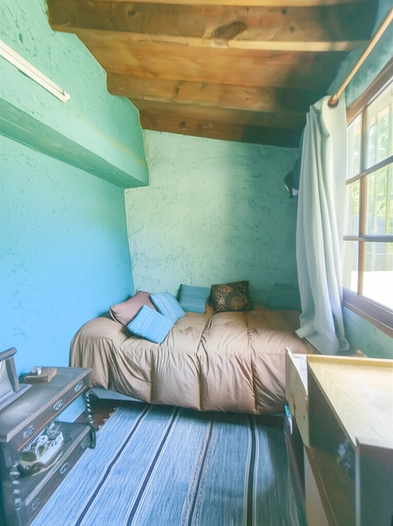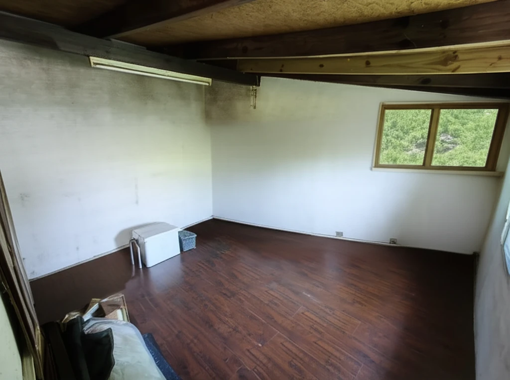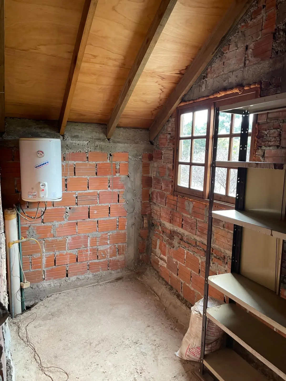 Ascendiendo por una cómoda escalera de madera con un generoso descanso, la planta alta ofrece dos dormitorios de importantes dimensiones y otro baño a terminar, con todas las instalaciones de cañerías y desagües ya colocadas.