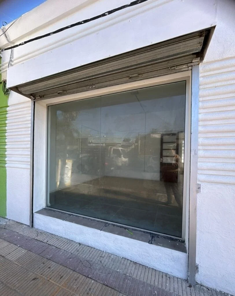 Al frente cuenta con dos habitaciones con vidrieras, una de ellas con puerta blindex y cortinas metálicas de enrollar.
